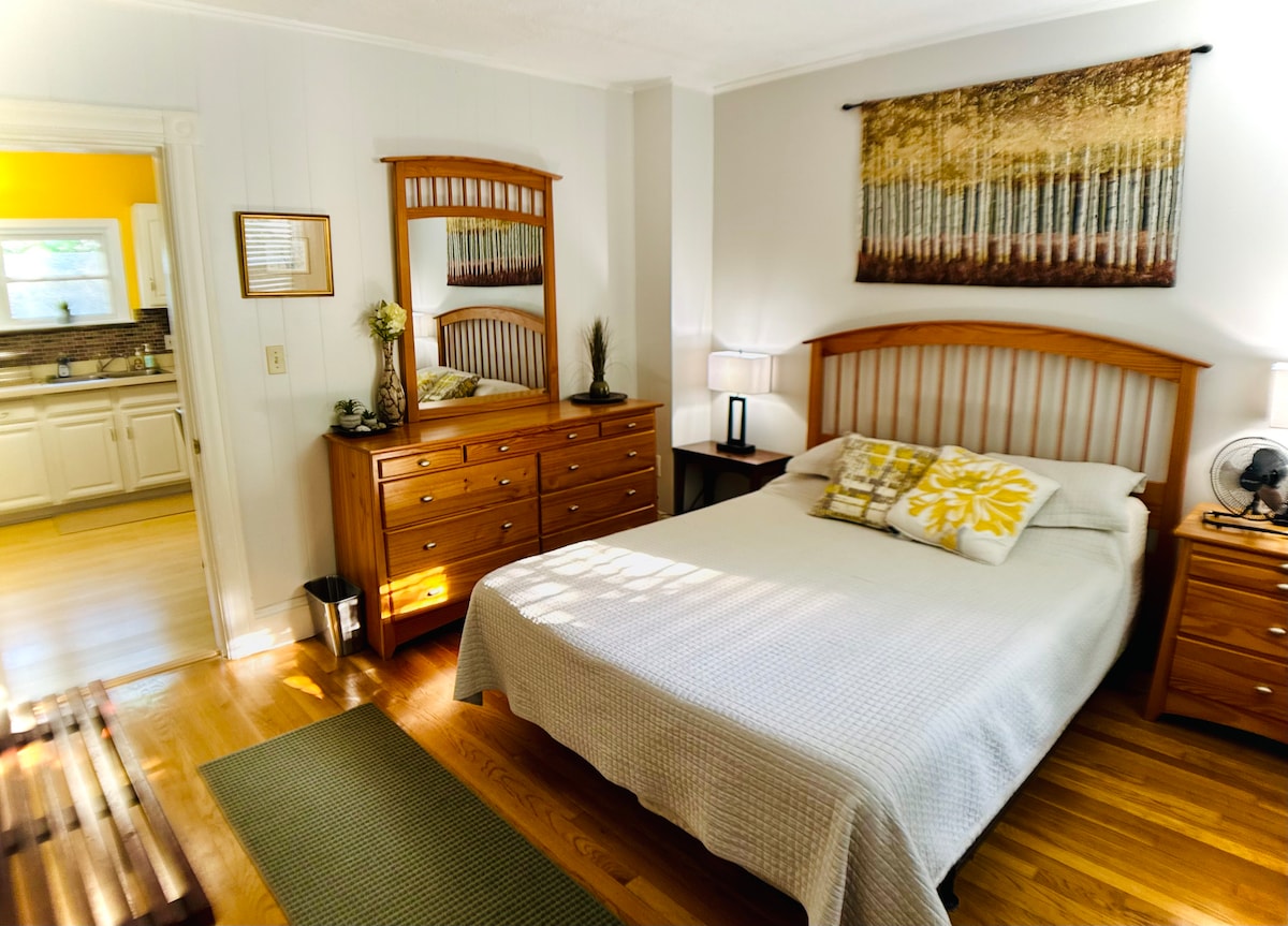 Appartamento open space recentemente ristrutturato in una casa privata situata in una tranquilla strada residenziale. Letto singolo regolabile queen-size, doccia a vapore e vasca idromassaggio oversize rendono questo alloggio un rifugio ideale per un relax senza stress. Include parcheggio privato, lavatrice e asciugatrice di grandi dimensioni e l'uso di entrambi i portici anteriori e posteriori con posti a sedere in stagione. Questo appartamento è ideale per coppie o individui che cercano relax e vogliono prendersi una pausa dalla frenesia della loro vita.