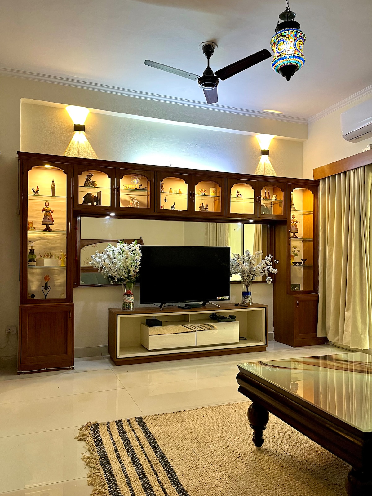 Boho-luxury 1BHK with a warm, cozy vibe featuring a private balcony with cushioned swing and fairy lights. ✨ Enjoy a 55” Smart TV with soundbar and subwoofer for a theatre-like experience. The stay offers AC, air purifier, induction, fridge, RO, cookware and tea/coffee. 🙌🏻 Located near Shalimar Bagh Metro, just 100m from KFC, Domino’s and McDonald’s, and close to PVR and Pacific Mall. 📍 Ideal for dates or birthdays, with décor available on request.❤️