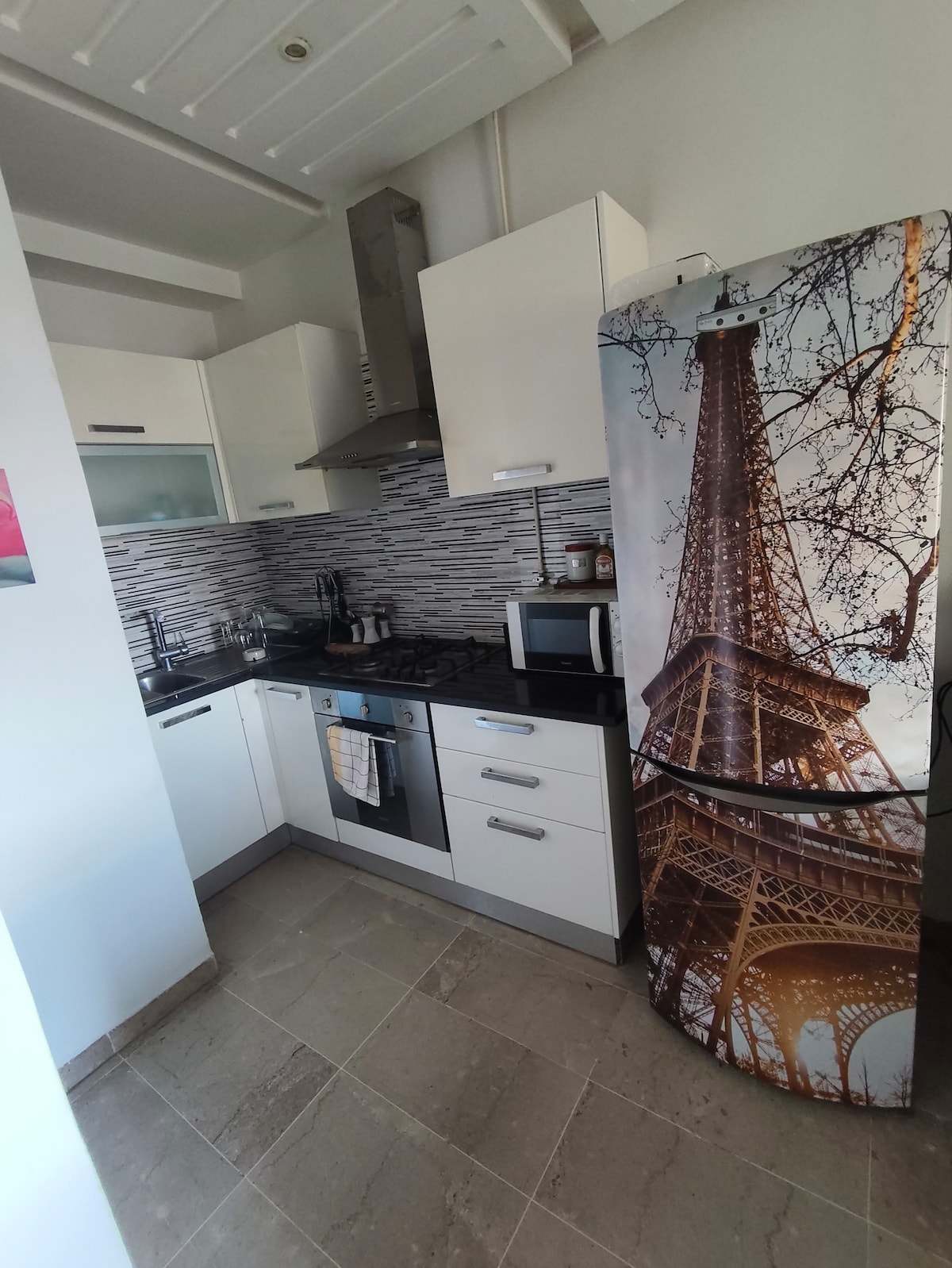 Apparentemente nuovo di zecca a 200 metri dalla spiaggia in un edificio di lusso, un appartamento offre un comfort di alto livello… dispone di un soggiorno con divano letto matrimoniale Cucina ben attrezzata..bagno con una spaziosa cabina doccia..una camera con un letto king size…l'appartamento è dotato di aria condizionata e dispone di riscaldamento centralizzato…un balcone con vista sul mare…e lontano da qualsiasi fastidio. molto vicino alla spiaggia..le discoteche, ristoranti e caffè. Il che gli conferisce un fascino senza pari
