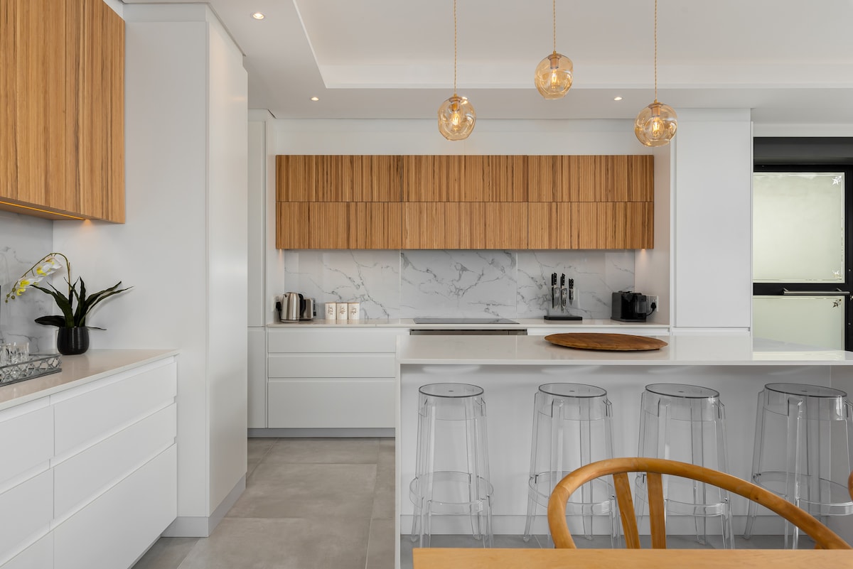 Spazioso appartamento a Camps Bay, dove la splendida vista sul mare eguaglia lo stile stellare degli interni! Immergiti in ciò che abbiamo da offrire e rilassati nel patio per goderti l'ora d'oro ogni giorno. Il sobborgo più raffinato di Città del Capo, con le migliori spiagge, ristoranti e bar, sul retro della Montagna della Tavola e del centro città: tutte le attività a 5 minuti di auto, a piedi, in autobus e con Uber. Lo spazio ideale per coniugare il lavoro con la vita privata e il divertimento!