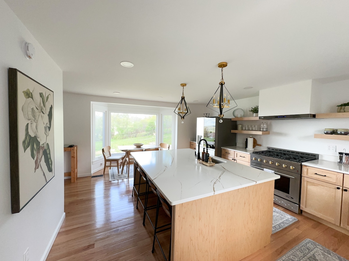 Atmosfera industriale in un ambiente rurale. Questa casa con 3 camere da letto e 2 bagni è nuovissima e progettata professionalmente. La casa dispone di una nuova cucina, TV da 65" nel soggiorno, letti comodi e due postazioni di lavoro da casa con doppio monitor. I cani sono i benvenuti, ma non possiamo ospitare gatti o altri animali domestici. *La nostra casa di nuova costruzione è la metà di un duplex affiancato. Ogni casa è estremamente tranquilla e dispone di spazi interni ed esterni completamente privati, per trarre il massimo dalla tua vacanza rurale.