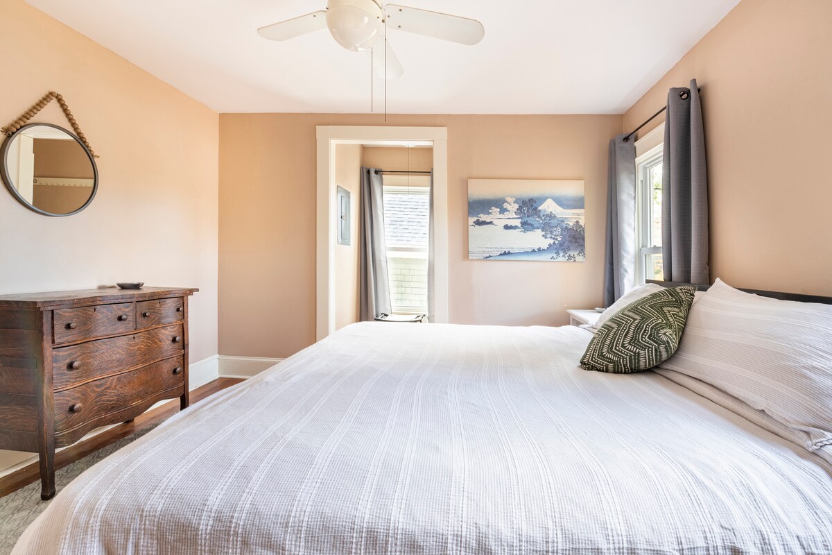 Questo accogliente appartamento con due camere da letto ristrutturato combina mobili moderni e vintage di metà secolo con un'atmosfera naturale e tipica dello stato di New York. L'elegante appartamento al primo piano di una classica casa di Ithaca, immerso nel quartiere di Fall Creek, dove si può andare ovunque a piedi. A pochi isolati dalle cascate di Ithaca, con facile accesso a Cornell, all'Ithaca College e al centro città. Ci siamo ispirati agli hotel boutique per progettare questo spazio, con bagno e cucina recentemente ristrutturati, elettrodomestici nuovi, smart TV e biancheria di lusso.
