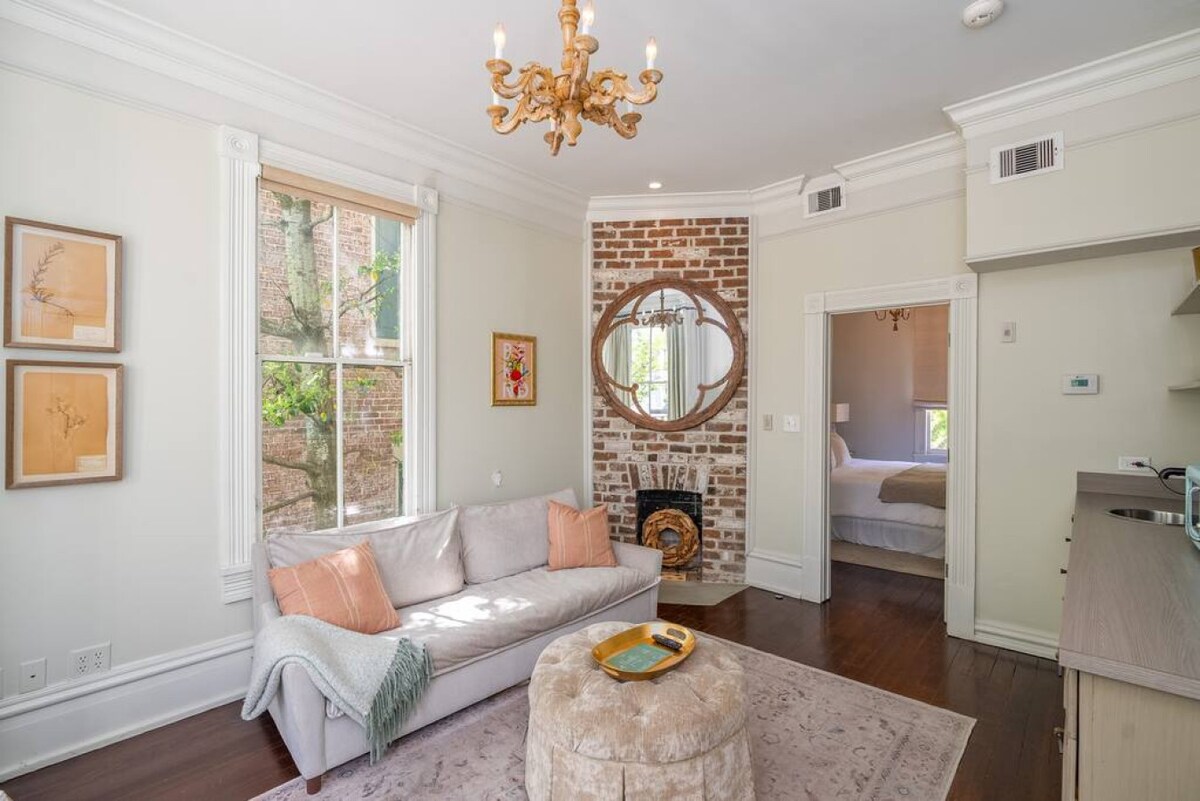 Enjoy our peaceful and spacious condo, perched on the second floor of our historic Savannah estate, just steps away from Forsyth Park! This 1-bedroom, 1-bathroom condo (with a convenient pull-out sofa, great for your extra guest!) is the perfect home base for your Savannah stay! Fully-equipped kitchen with all the amenities, cozy and comfortable living space with flat screen SmartTV, fast WiFi, and the cherry on top...a HUGE private balcony! SVR 01789