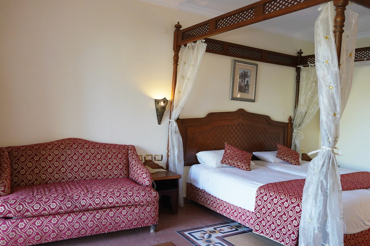 La Suite privata si trova nell'area più tranquilla del Coral Bay Resort, in un blocco di recente costruzione, arredato in stile arabo/mediterraneo, con terrazza privata e giardino comune. La suite è sempre stata utilizzata da noi e da dicembre 2022 la diamo a disposizione anche di voi ospiti per alcuni periodi. Potrai usare tutte le 8 piscine del Resort (la più vicina dista 100 metri), un area riservata della spiaggia, tutti i ristoranti a buffet o alla carta del Resort