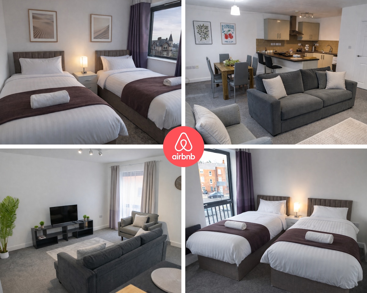 Abbiamo creato un elegante appartamento con due camere da letto nel centro di Wolverhampton. Recentemente ristrutturato, ci siamo impegnati per arredare l'appartamento con un fresco mix di colori e alcuni arredi distintivi. A differenza di un hotel, i nostri appartamenti sono progettati individualmente. L'appartamento include *WiFi e Smart TV *En-Suite *Cucina completamente attrezzata *Lavatrice *Terrazza A pochi passi dalla stazione ferroviaria e dal centro città incl. Mander Centre, Wulfrun Shopping Centre e Queens Square.