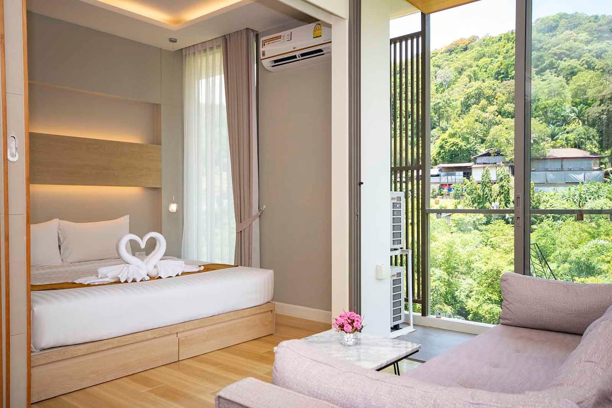 Accogliente camera minimalista a 15 minuti in auto da Patong.