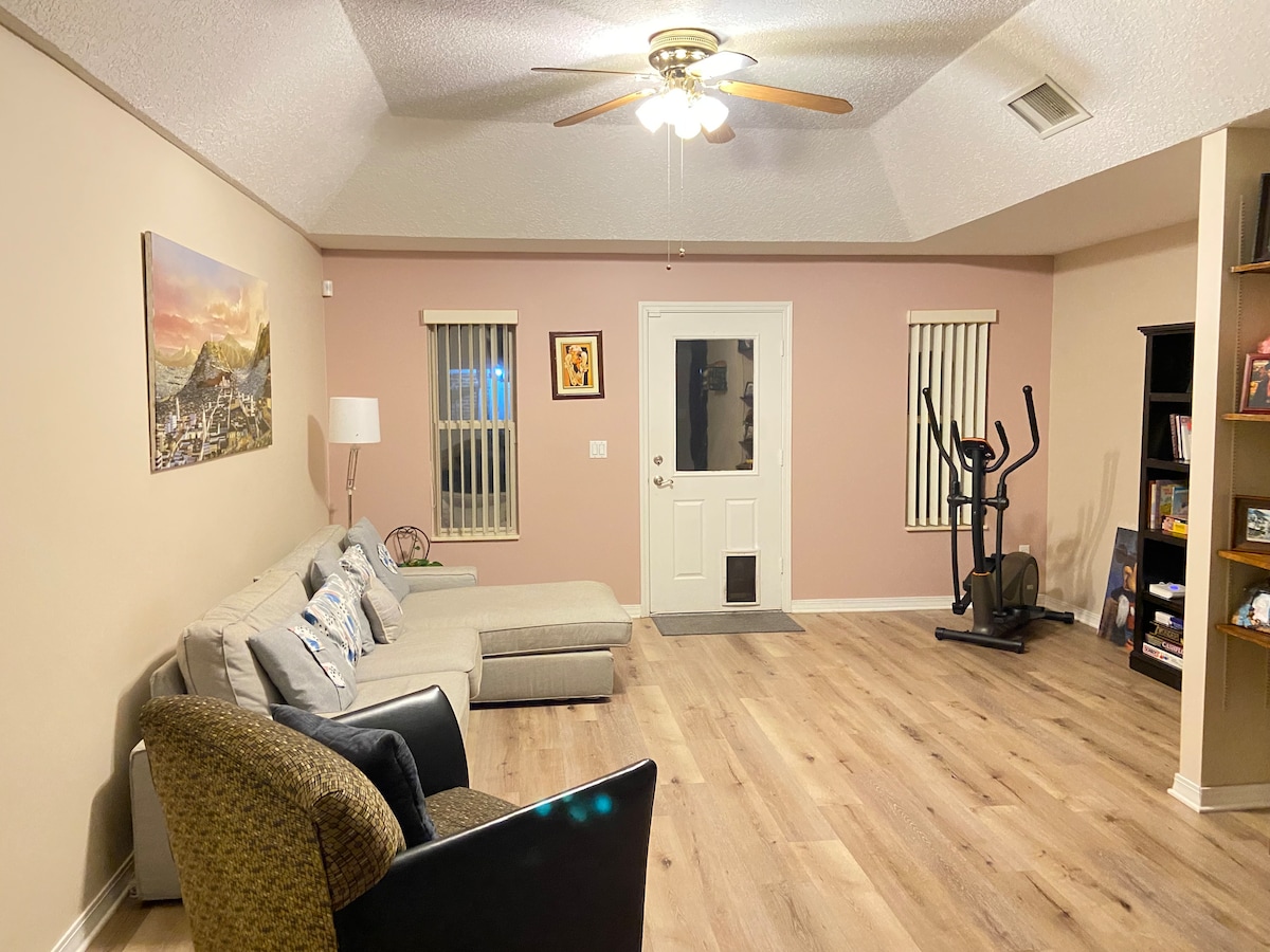 Grazioso appartamento pulito ed efficiente all'interno di una casa più grande. Completamente privato, con porta d'ingresso indipendente. Pavimento in vinile di lusso effetto "legno", materasso in memory foam. Gli elettrodomestici includono frigo/congelatore, tostapane, forno a microonde, fornello, caffettiera. Tanto spazio per riporre oggetti e un ampio armadio. A soli 6 km dallo stadio e dal centro città, a 16 km dalla Mayo Clinic e a 21 km dalla spiaggia. Situato in posizione centrale, è un'ottima posizione per concerti, festival e altri eventi nella zona di Jacksonville!