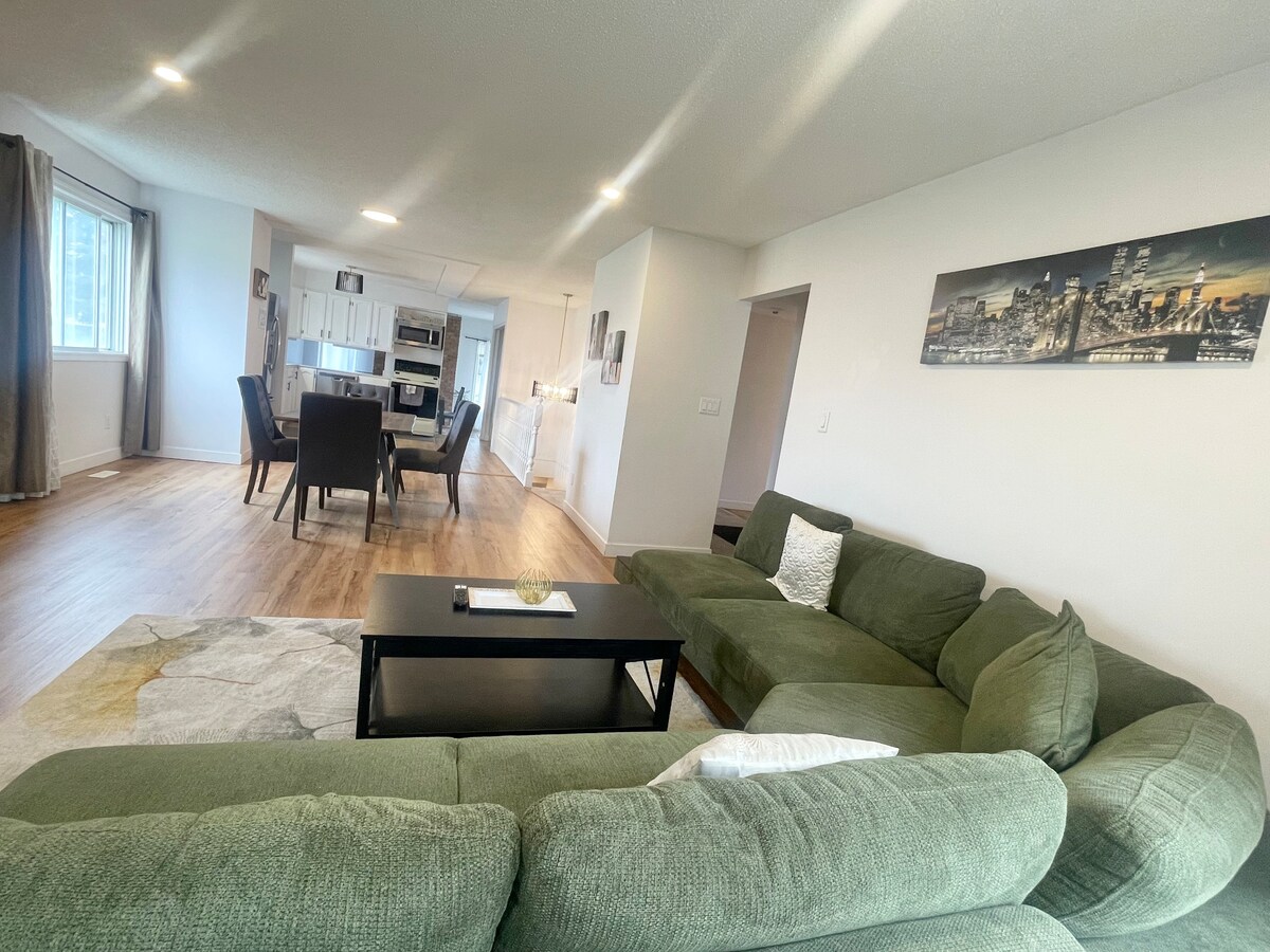 La tua casa lontano da casa! Ti diamo il benvenuto nella nostra suite con 2 camere da letto recentemente ristrutturata, luminosa ed elegante. Situato in posizione centrale per accedere al lato sud, al centro commerciale West Edmonton, al centro città e alla bellissima valle del fiume. Si tratta di una suite privata in un quartiere tranquillo e maturo che può ospitare comodamente fino a 4 persone. La cucina ha tutto il necessario per preparare i propri pasti e c'è molto spazio per rilassarsi nel soggiorno, nelle camere da letto e nello spazio esterno.