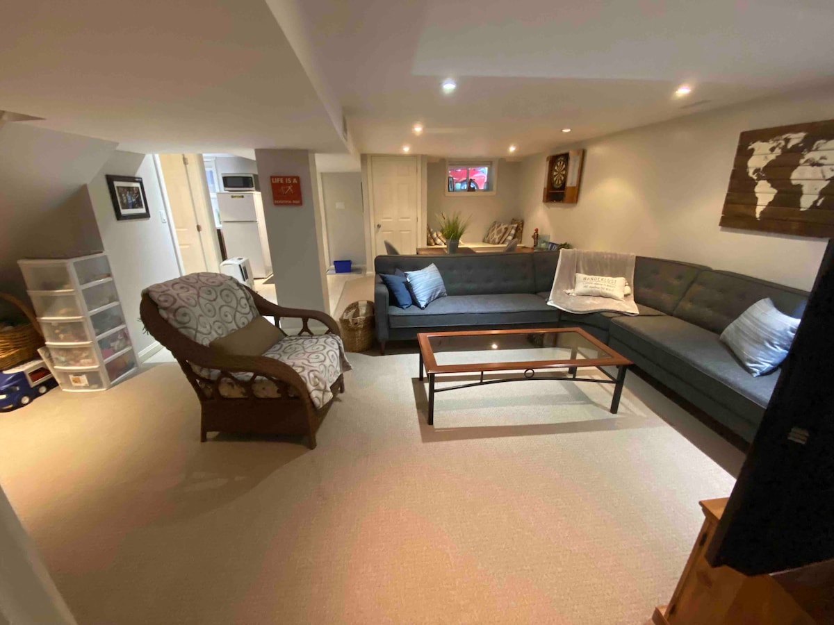 A pochi passi dal treno GO di Aldershot e a pochi passi dal lago e dal porto turistico, questo appartamento seminterrato di tre anni è completo di bagno, cucina e ingresso indipendente. C'è un sacco di parcheggio in questo bellissimo quartiere, sicuro e tranquillo. L'appartamento contiene tutti gli elementi essenziali di cui avrai bisogno per un soggiorno grandioso; se manca qualcosa, faccelo sapere, così cercheremo di soddisfare le tue richieste.