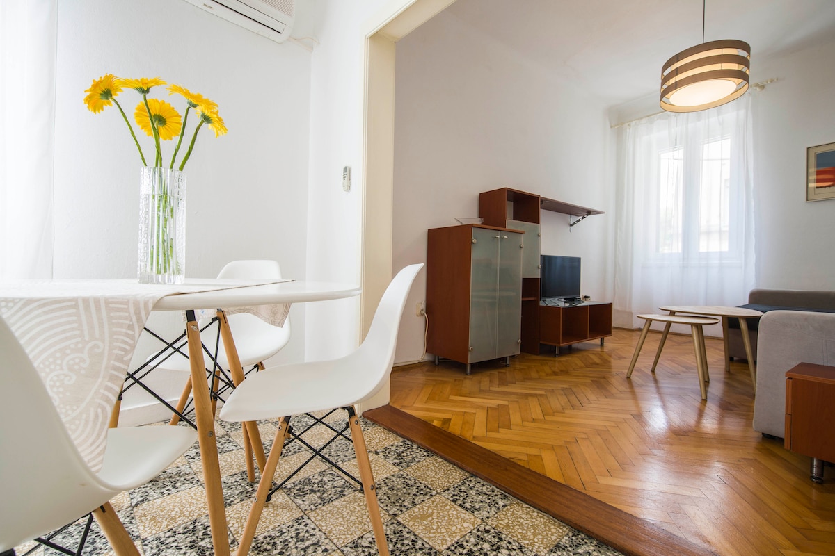 Scopri questo bellissimo appartamento situato a pochi minuti dal centro città e dalle zone affollate. Goditi il tempo lontano dai rumori della vita notturna mentre ti affacci sulla città e sul suo vivace porto. Trascorri le mattine nel parco della foresta di Marjan, a soli cinque minuti di distanza, oppure fai una passeggiata lungo la strada e fai colazione o caffè in alcuni dei bar e ristoranti più cool.