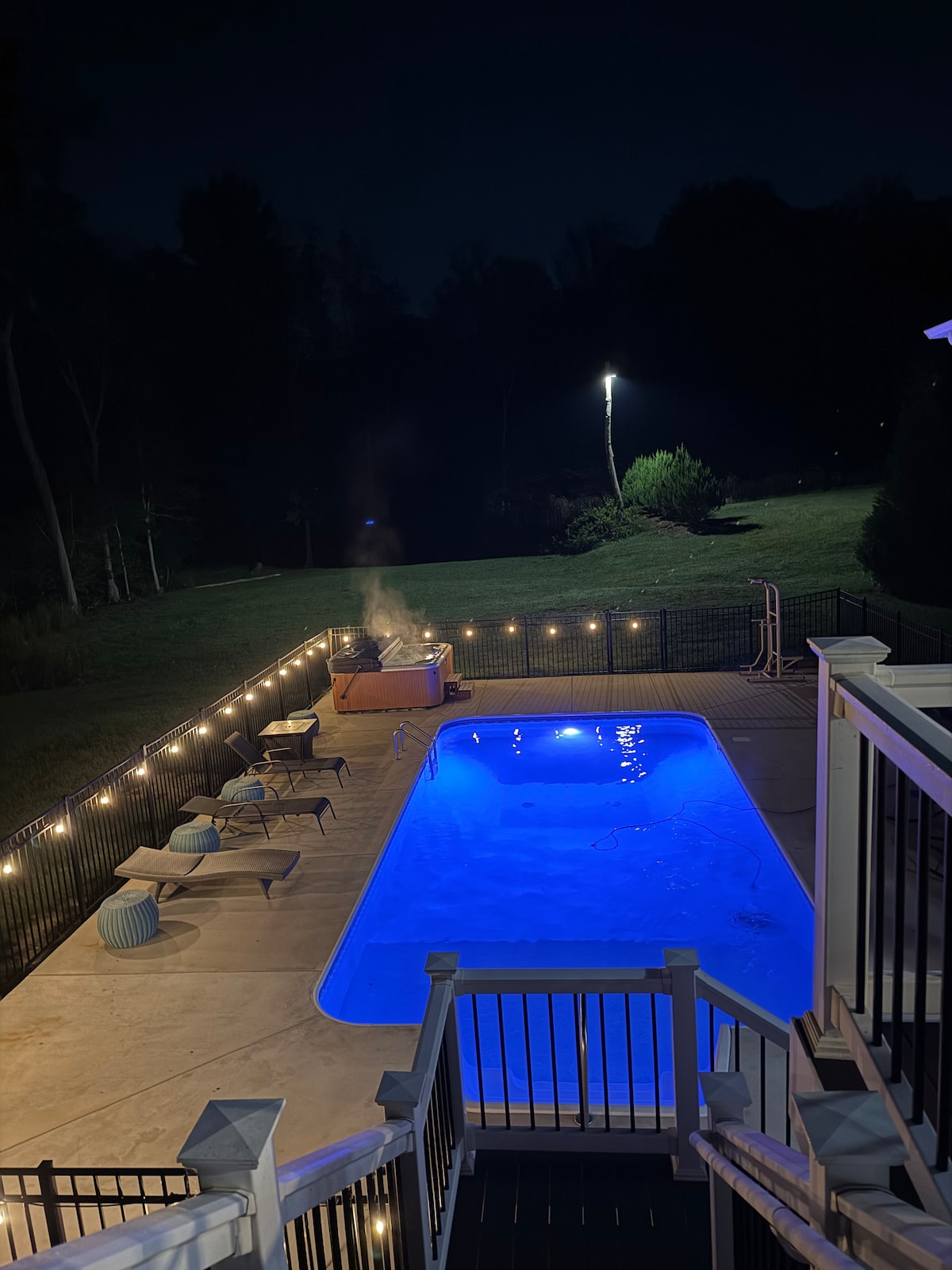 A FXBG Hideaway to relax and live your best vacay life in 3,000+ sqft retreat nestled in a peaceful enclave minutes from the heart of Fredericksburg! Inside Haven: • theatre • billiards • bar/caffeine nook • kitchenette • 2 living spaces, sofas in both main living room and theatre fully recline to beds • gym Outside Oasis: • saltwater pool • hot tub • firepit • upper deck, prime spot to soak in nature's beauty. Special request? Please let us know. We love making magic happen for our guests!
