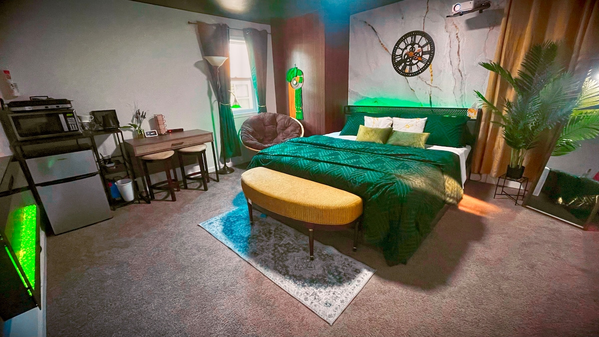 Welcome to The Serene Green Suite! 20-25 mins to DC & 10 mins to Northwest Stadium! Perfect for solo travelers, business trips, or couples seeking comfort, calm, and style. Relax in a peaceful setting with easy access to local hotspots and enjoy a space designed for both rest and productivity. Amenities: ~Plush queen bed ~55" smart TV ~Washer/dryer ~Private patio with seating ~Kitchenette & coffee bar ~Dining table ~Driveway parking ~Local guidebook Book now for a stylish, relaxing stay!