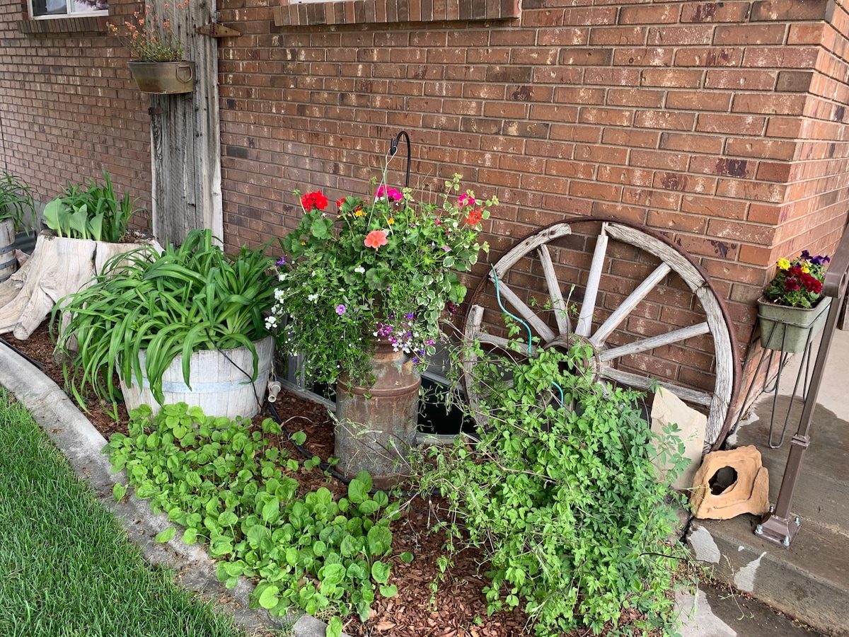 A favorite that fills up fast! This remodeled, pet friendly whole house has a fully fenced backyard and sits in a peaceful and well established neighborhood. 2 bedrooms including a king size bed and two twins. Nice kitchen with stocked pantry. Washer and dryer also! 5 min from Hobble Creek Canyon, 30 min from Provo Canyon and skiing at Sundance. Just 1 hr from Salt Lake City, with all its many experiences. Close to BYU and UVU, golfing, skiing, & 15 min. from the rapidly expanding Provo Airport!