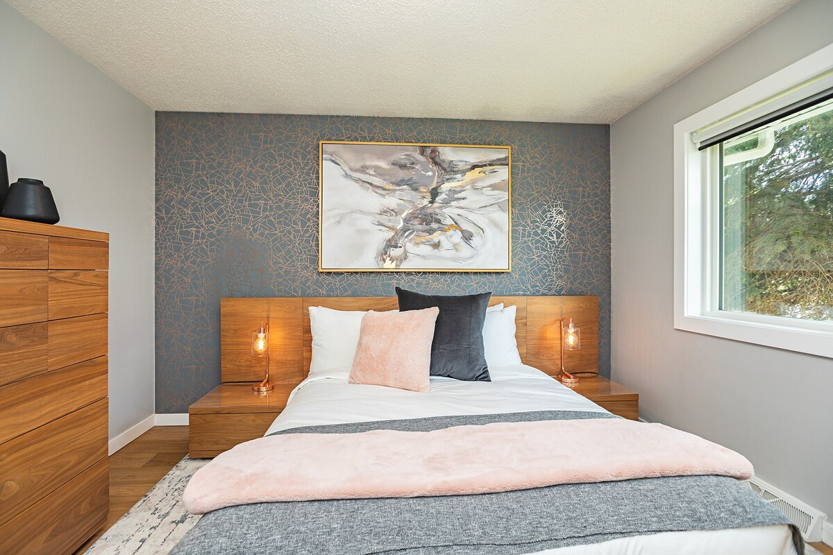 Questo spazioso bungalow si trova nel centro sud di Edmonton, vicino al centro commerciale South Gate. Situata in un quartiere maturo e tranquillo, questa casa si trova a pochi passi dal Southgate Centre e dalla metropolitana leggera. *3 camere da letto al piano principale e altre 2 nel seminterrato *Può ospitare fino a 10 persone *Pulizia professionale *Cucina ben rifornita *Lavanderia in loco *Wi-Fi ad alta velocità e Netflix *Garage doppio gratuito e parcheggio nel vialetto *Cortile recintato *Facile accesso alle strade principali *Vicino a U of A e all'ospedale, a Whyte Avenue