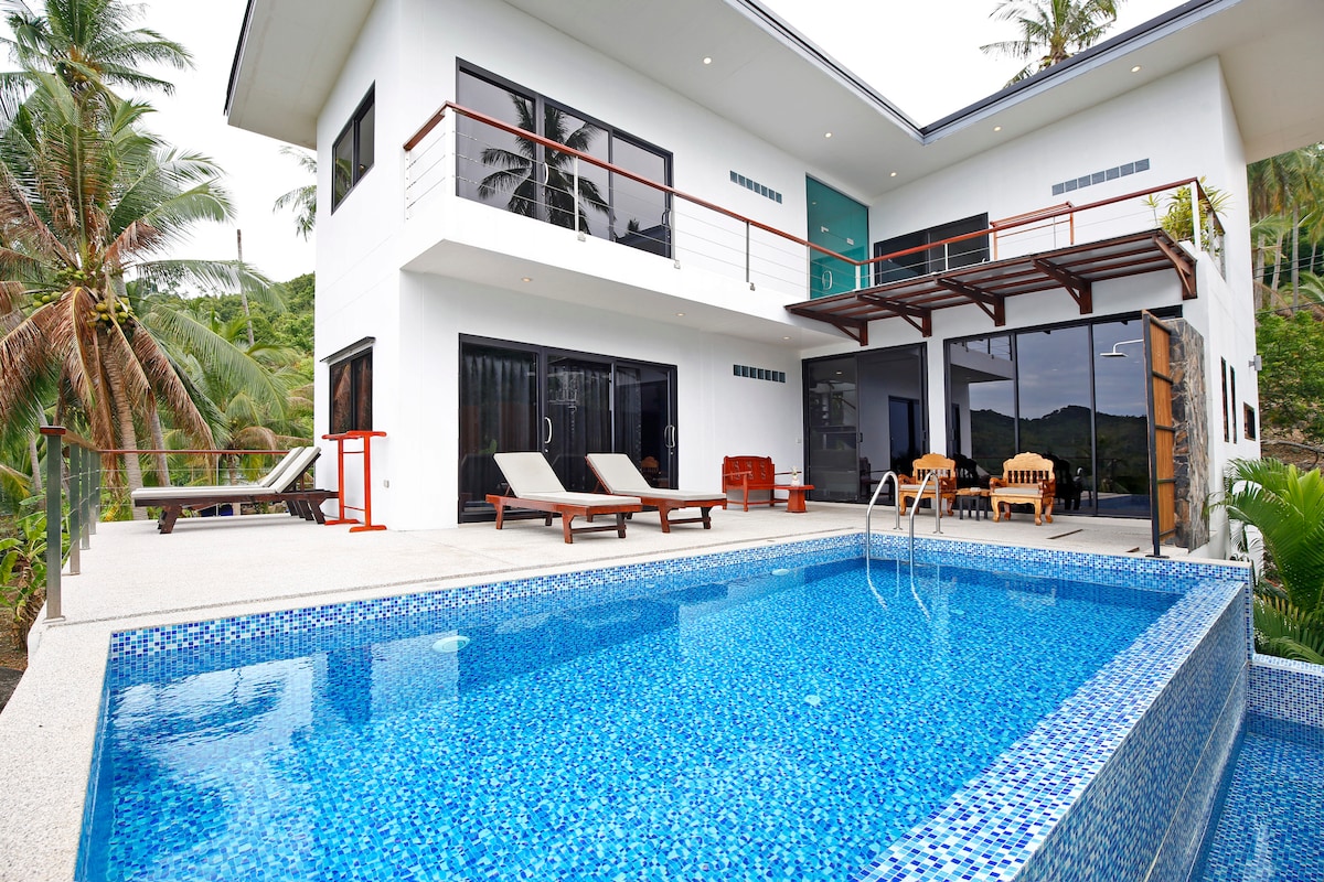 Villa nella giungla di Koh Phangan con piscina a sfioro e vista mare