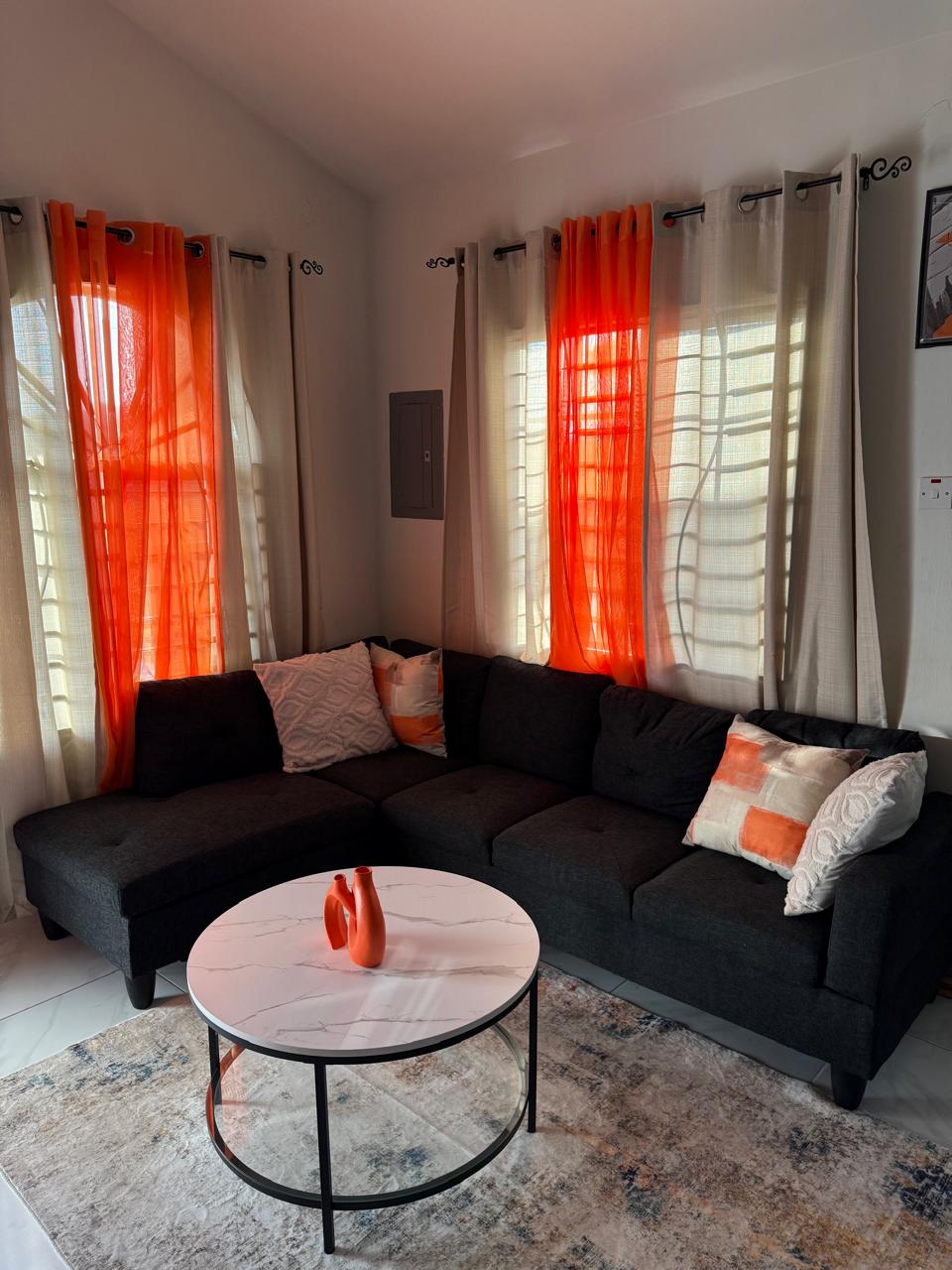 Moderna casa con 2 camere da letto e 1 bagno, realizzata e personalizzata per il tuo relax in un complesso residenziale recintato. Le camere sono dotate di TV con accesso a Netflix, wifi, aria condizionata e ventilatore a soffitto in ogni stanza. La casa è inoltre dotata di lavatrice e griglia per barbecue. Fornello a luce automatica e frigorifero con macchina 🧊 per il ghiaccio. Lampade da comodino con caricabatterie per telefoni 🔌 e sveglia ⏰ per svegliarti.