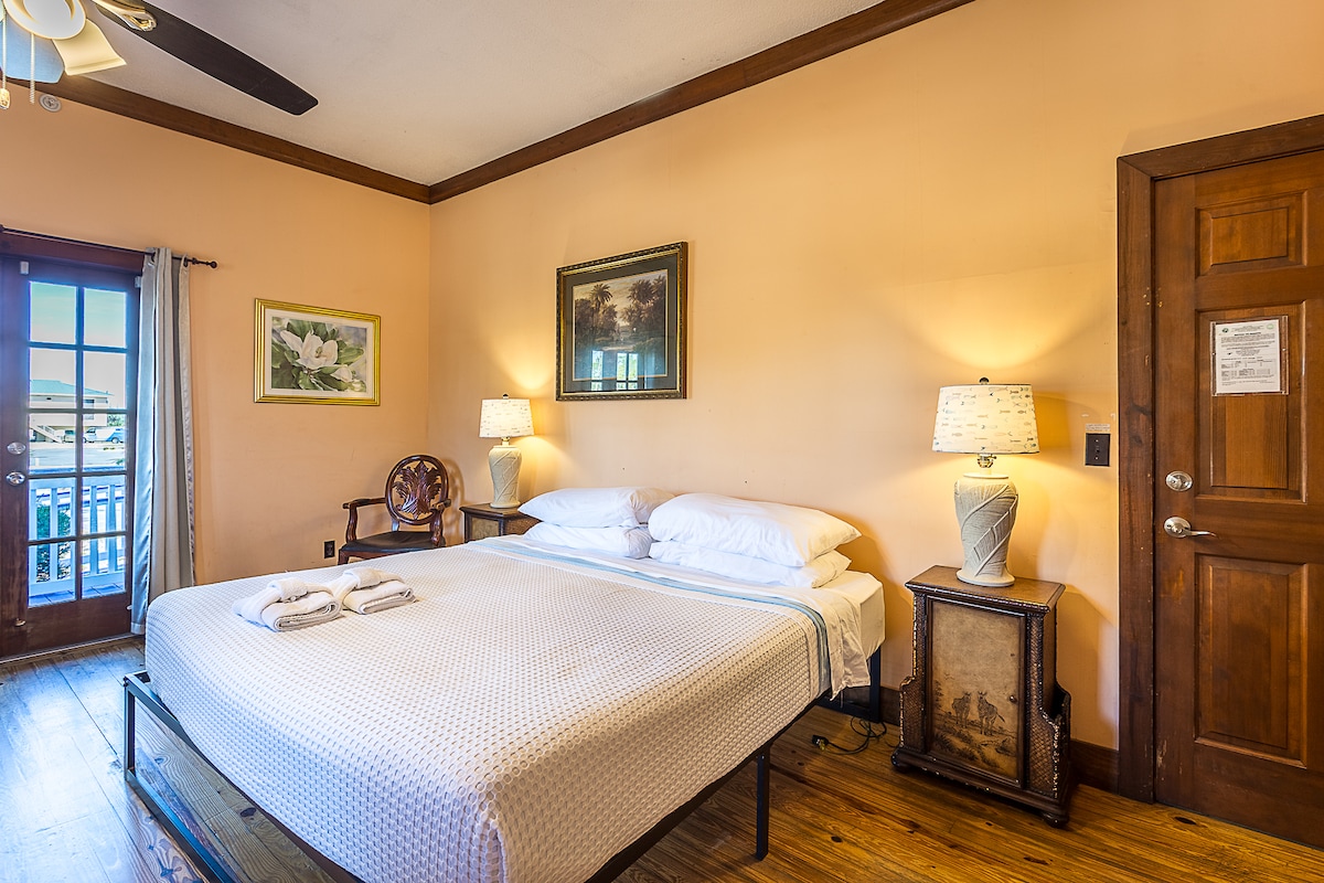 Non vorrai lasciare questo luogo incantevole e unico nel suo genere, a pochi passi dal centro di Apalachicola. Sentiti libero di lasciare la tua auto e passeggiare nel bellissimo centro storico o di noleggiare una delle nostre bici da spiaggia e di esplorare tutto, dai migliori frutti di mare ad alcuni dei migliori birrifici. Non tornare troppo tardi perché è risaputo che i fantasmi vagano per i corridoi di questa storica locanda di notte. Questa camera ha un letto king size.