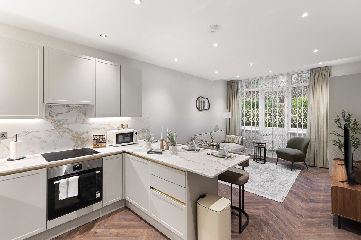 Questo spazioso appartamento con una camera da letto è un rifugio unico e artistico, inondato di luce calda e naturale. La zona giorno, ispirata a Picasso, mette in mostra le sue opere d'arte e dispone di ampie finestre che inondano lo spazio di luce solare. Situato a soli 2 minuti a piedi da Regent's Park e da St John's Wood High Street, l'appartamento si trova in una tranquilla zona residenziale, a sole 2 fermate dalla stazione di Bond Street. Questo appartamento unico nel suo genere, che unisce perfettamente praticità e fascino, è ideale per un soggiorno elegante e confortevole.