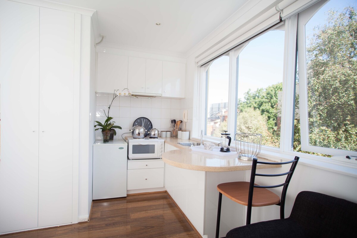@__littlejourney__ Situato in Claremont Street, sopra il caffè più vivace di South Yarra, Two Birds One Stone. L'appartamento è un elegante 1 camera da letto con soffitti alti al 15 ° piano (ci sono 16 piani). Un appartamento all'angolo esposto a est con vista su Chapel Street e sulle montagne. La cucina è attrezzata con elettrodomestici Miele, lavastoviglie e tavolo da pranzo per 2 persone. Doccia a pioggia in bagno. Prodotti per la doccia Alchimista coltivati. Lavanderia europea. L'area esterna è dotata di barbecue.