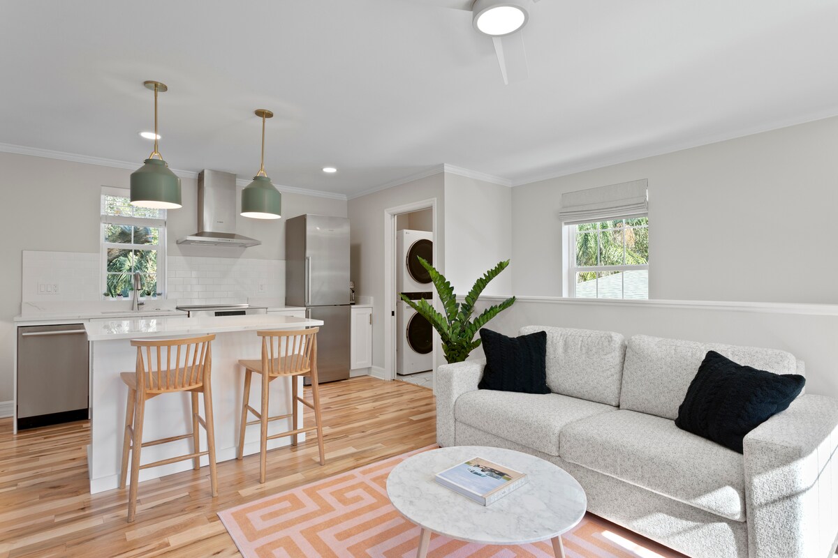 This newly constructed carriage house was built to embrace the character and charm of the main house, a 1928 craftsman bungalow. Your 2nd floor 1 BR apartment is well appointed with a full chef's kitchen, a living room with a pull-out sofa, and washer/ dryer. Enjoy a morning cup of coffee or a glass of wine in the evening on the large porch. 2 min walk to Grand Central restaurants, coffee shops, boutiques, or grab a bike or scooter for a 5 min ride to Downtown St. Pete or 15 to the beaches.