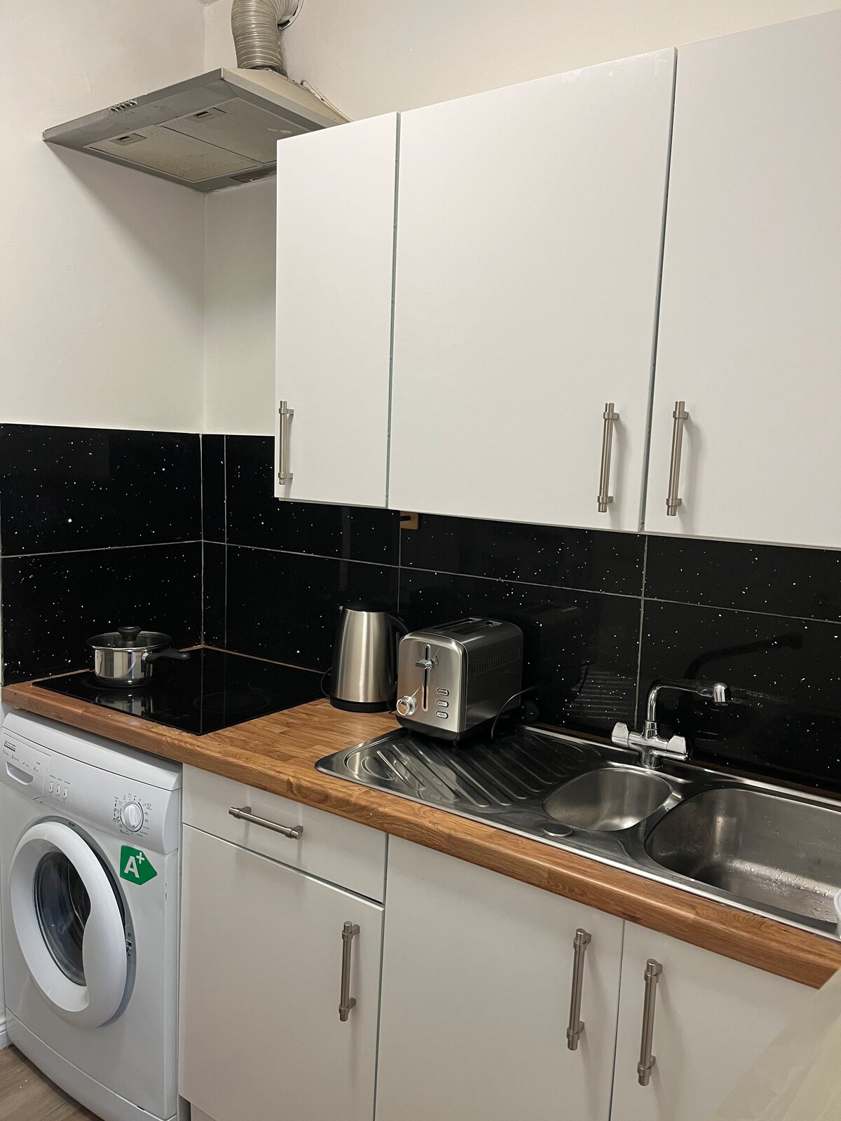 Goditi una vacanza all'insegna dello stile in questo monolocale in centro, dedicato ai viaggi di lavoro a Spalding Soggiorno aziendale perfetto, contattaci per un accordo a lungo termine Caricatore per veicoli elettrici e parcheggio a 15 m di distanza £3 al giorno/gratis di notte e la domenica Splendido monolocale ristrutturato in una strada laterale appena fuori dal centro città; caffè, bar, ristoranti e negozi nelle vicinanze. SUPER KING SIZE O DUE SINGOLI 198 cm di lunghezza Soggiorno di lusso WOW Poltrone Cucina completamente attrezzata Lavastoviglie Lavatrice Passeggiata nella doccia digitale 3 minuti a piedi per la stazione ferroviaria