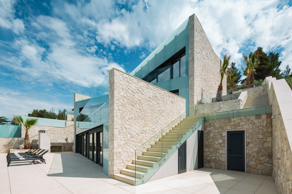 È un'incantevole villa moderna con splendida vista sul mare. La spiaggia si trova a 70 metri sotto la villa; puoi anche scegliere di trascorrere il tuo tempo sulla terrazza con piscina privata e tutto il necessario per una vacanza rilassante. Una parte della piscina si trova sotto la villa, ed è stata progettata in modo che, se piove o fa freddo, gli ospiti possano sempre usufruire della zona piscina riscaldata. Poiché la villa si trova su un pendio, è suddivisa in 3 livelli. Può ospitare fino a 8 persone in 4 bellissime camere da letto.