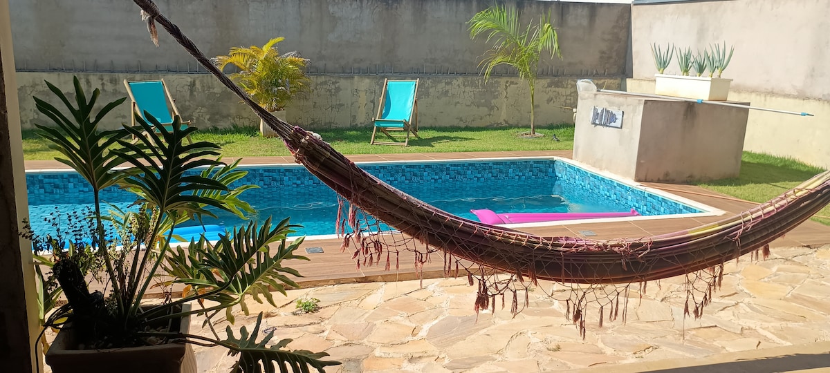 Spazio rustico e accogliente, 2 camere da letto con 3 letti matrimoniali, 2 bagni, soggiorno con divano letto matrimoniale, cucina con utensili, area ricreativa con piscina, pergolato, barbecue, forno per pizza, stufa a legna, frigorifero. All'interno di un condominio con laghi e portineria 24 ore su 24. Vieni a festeggiare, rilassati e goditi questo ambiente piacevole. L'accesso al club non è consentito, solo per le feste aperte al pubblico, come giugno e Capodanno, acquistando gli inviti direttamente attraverso il sito web. Non offriamo biancheria da letto e da bagno.