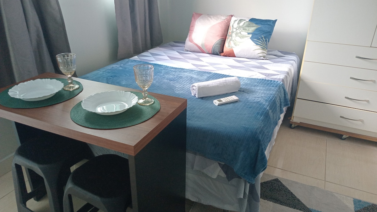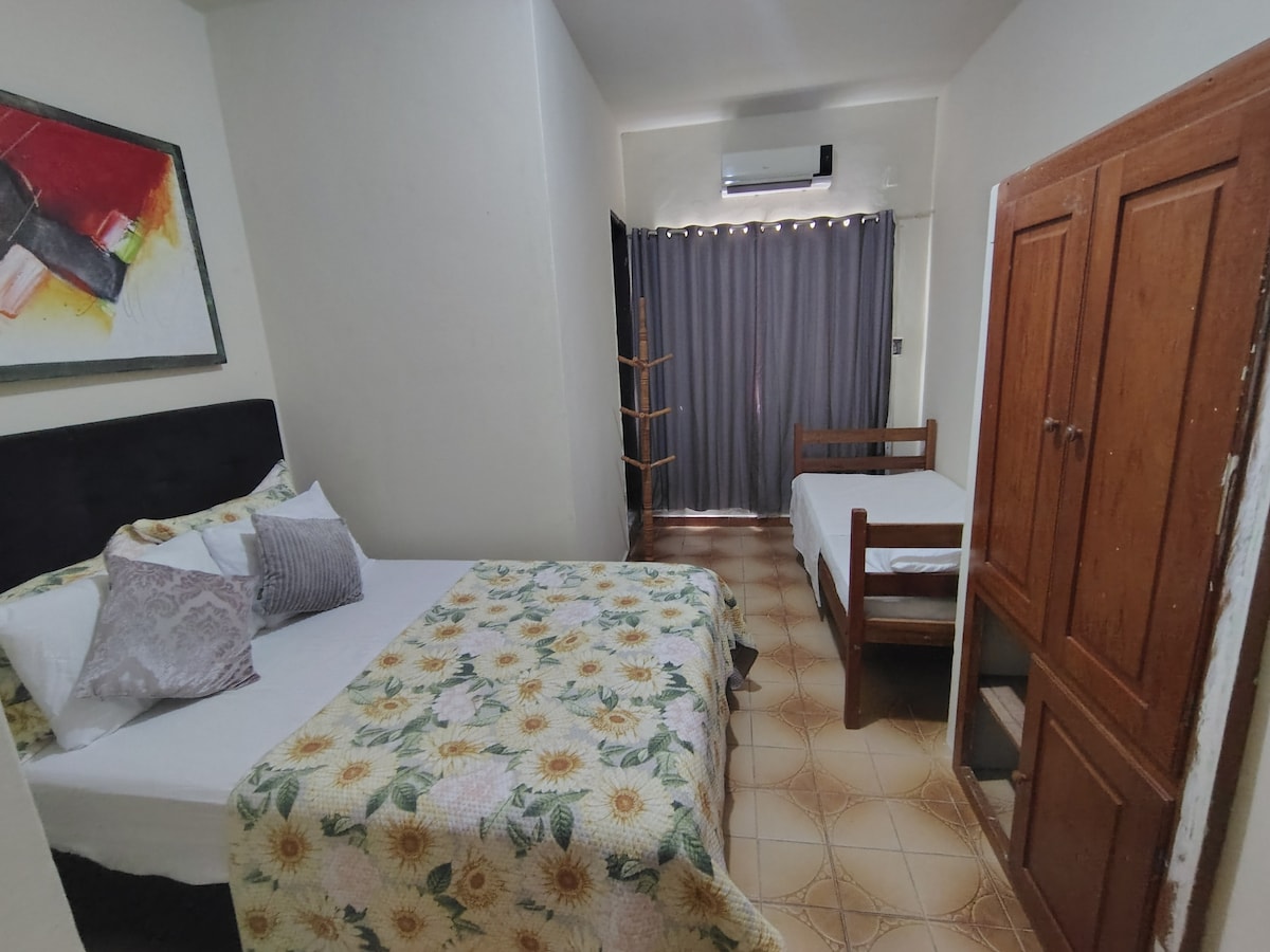 Camera singola per brevi soggiorni, con le altre aree della casa in condivisione. Dimentica ogni preoccupazione in questo luogo spazioso e tranquillo, dotato di biancheria da letto, asciugamani, aria condizionata e acqua minerale. Il bagno, sebbene condiviso, è sempre pulito e igienizzato. Ottima posizione con facile accesso ai veicoli app (Uber/99). Non è previsto un posto auto (a seconda della disponibilità e delle dimensioni del veicolo).