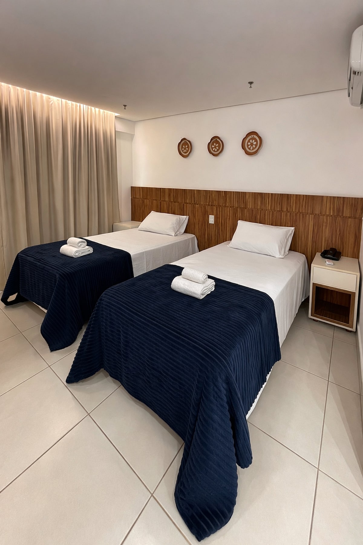Appartamento ben posizionato, in uno dei principali isolati di Palmas, a pochi metri dal Palazzo Araguaia, accanto all'HGP e al Palmas Shopping. APPARTAMENTO privato presso il Vivence Suites Hotel, dove i nostri ospiti hanno accesso agli stessi vantaggi degli ospiti dell'hotel, ad eccezione della colazione, ma se lo desideri, puoi pagare direttamente al ristorante l'importo di 45,00 R$ a persona.