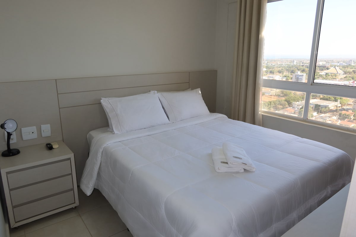 Hospede-se em um flat exclusivo dentro de um dos melhores hotéis de Palmas e viva a cidade com todo o conforto que você merece. Localizado no centro, o apartamento oferece suíte completa, varanda panorâmica com vista incrível para cidade e Lago de Palmas e ainda cozinha equipada e sala aconchegante. No condomínio, você terá acesso à piscina e à academia moderna. Seja a trabalho ou lazer, este flat une praticidade, sofisticação na capital do Tocantins.