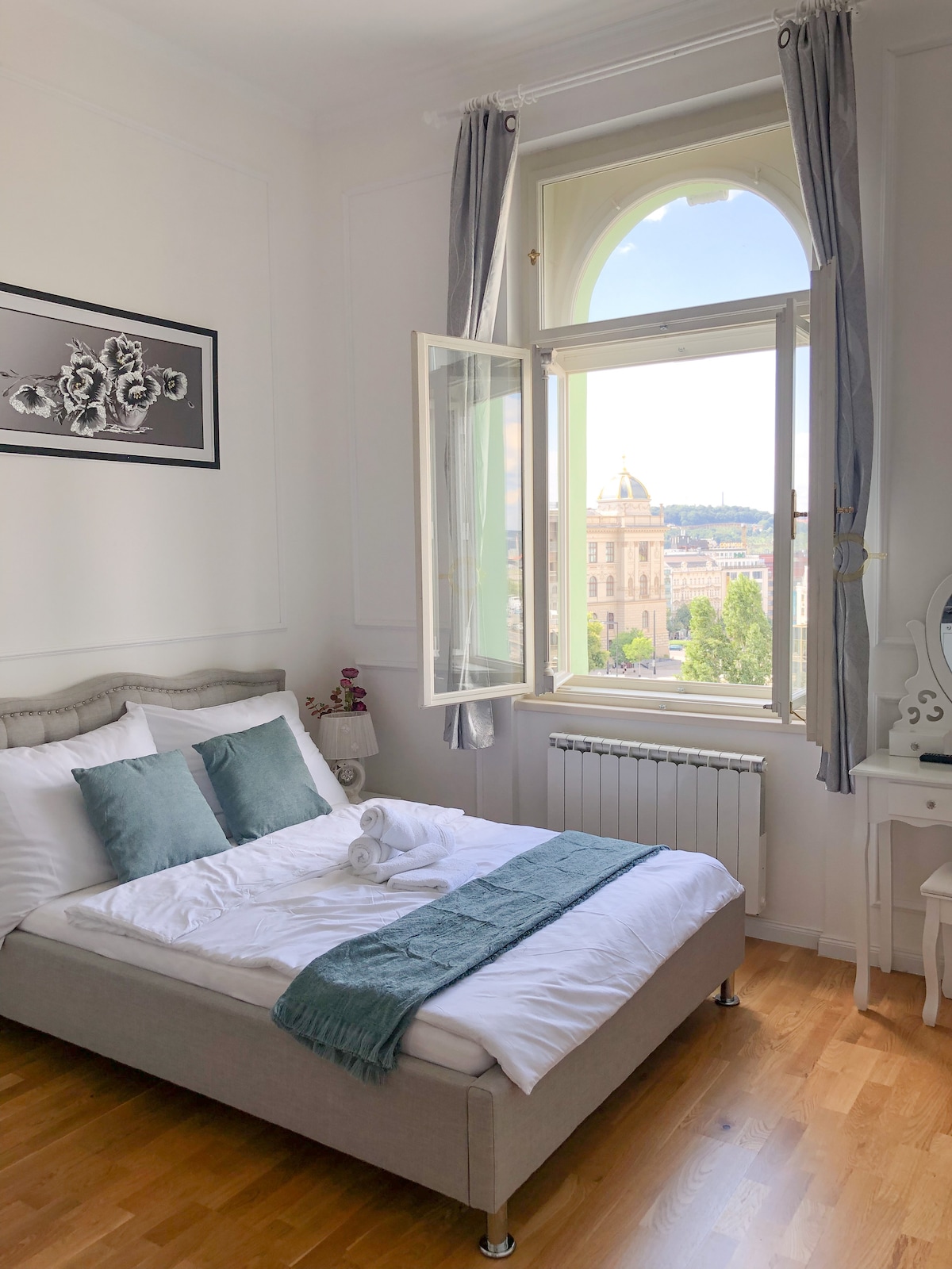 Accogliente appartamento luminoso nel cuore del centro di Praga che si affaccia su Piazza Venceslao. Nelle vicinanze si trovano tutti i servizi, negozi, ristoranti e bar. Di fronte alla casa c'è una fermata del tram che porta direttamente al centro o alla stazione ferroviaria principale vicino casa. C'è anche un parcheggio a pagamento di fronte alla casa. L'appartamento si trova a 200 metri a piedi dal Museo Nazionale o da Piazza Venceslao ed è completamente attrezzato con elettrodomestici. C'è anche il wifi gratuito durante tutto il soggiorno.