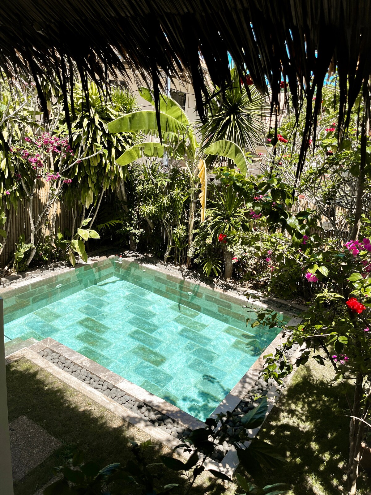 Grazie alla posizione centrale di questo alloggio, il gruppo potrà accedere facilmente a tutte le attrazioni locali. Questo alloggio si trova a 12 minuti a piedi da Dmall e a 5 minuti a piedi dal lungomare di Bulabog. È l'unica villa in stile balinese con 4 camere da letto (design open space) con piscina, cucina e griglia nella zona di Bulabog. La casa si trova in una zona residenziale. Non molto trafficata, ma comunque molto accessibile con etrike e habal. Aspettati il canto dei galli ogni mattina, che ti avvicina alla natura mentre ammiri l'alba.