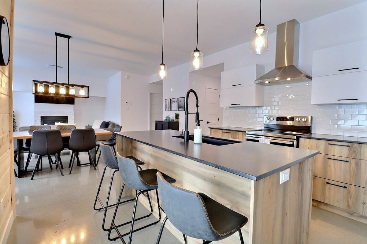 Il "NOvOchalet" vi offre una splendida vista sulle piste del centro "Le Valinouet". 1 minuto a piedi e siete alla biglietteria del centro sciistico e per motoslitte e mountain bike avete il parcheggio! Situato nel cuore dei Monts-Valin, sei semplicemente nel paradiso dell'aria aperta! Parco della SEPAQ, sci alpino, escursioni, motoslitta, mountain bike, sci di fondo, snowboard, discese in tubo, sentieri per racchette da neve, sentieri per Fat Bike, zoo selvaggio, escursioni, pesca e anche spa. Buon soggiorno!