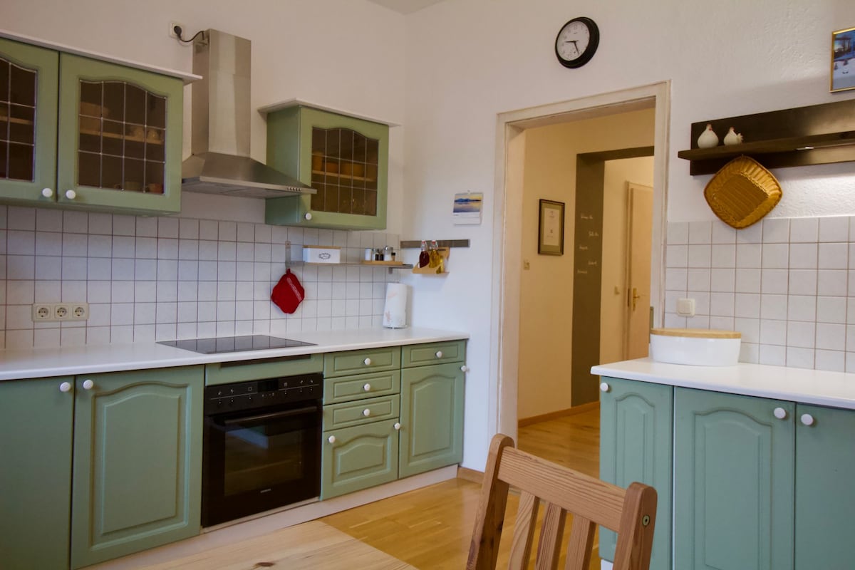 Bellissimo appartamento moderno di 62 metri quadrati nel cuore del pittoresco villaggio di Unterwössen. Modernamente attrezzato con lavastoviglie, lavatrice, forno, microonde e piano cottura. Una piccola terrazza, su cui splende sia il sole del mattino che quello della sera, con tavolo e sedie, nonché barbecue a carbonella è anche a vostra disposizione. Un romantico letto a baldacchino nella camera da letto e un ampio divano letto (superficie letto 1,60x2m) nella zona giorno garantiscono un sonno riposante.