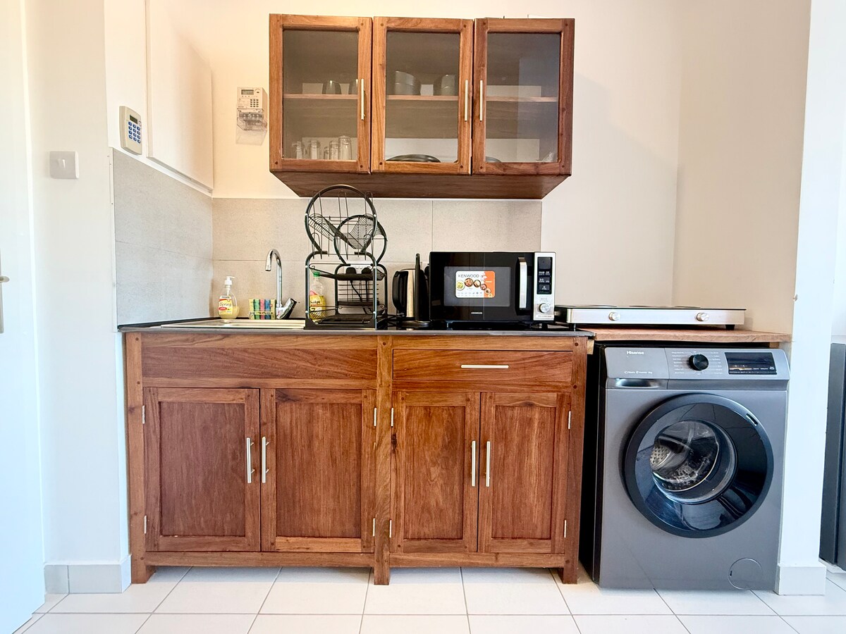 Un appartamento elegante e completamente servito situato in una tranquilla e ben sviluppata città di Fumba, che è una lussureggiante residenza verde, proprio accanto all'Oceano Indiano. Questo appartamento ha un profumo sottile e rilassante che ti dà comfort e non solo: c'è una candela di cera di soia da illuminare quando desideri un'atmosfera più accogliente. La posizione è a soli 20 minuti di auto dalla città di pietra, e vicino alle migliori spiagge di Zanzibar. All'interno del residence c'è un ristorante locale chiamato kwetukwenu.