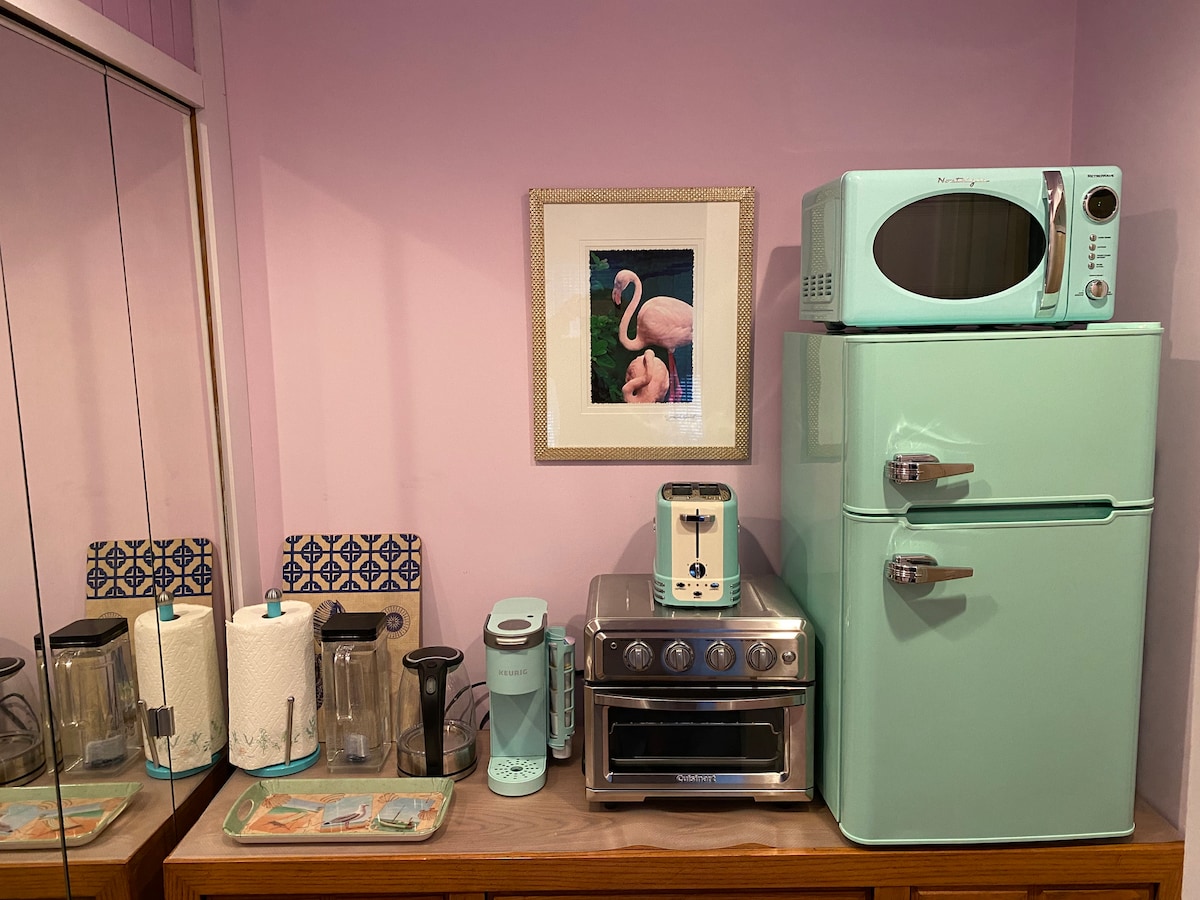 - Sleeps 4 (Queen bed & air mattress) -Heated towel/robe warmer, plush robes, microfiber hair wrap, makeup mirror -Coffee bar w/ french press, espresso machine, fresh coffee beans, flavored syrups, tea -Fully stocked kitchen w/ airfryer, baking essentials, toaster - Access to streaming services is provided (no cable TV) -Barware including cocktail shaker set, champagne flutes, margarita/wine/whiskey glasses -Complimentary toiletries & feminine oriented essentials -Indoor fireplace