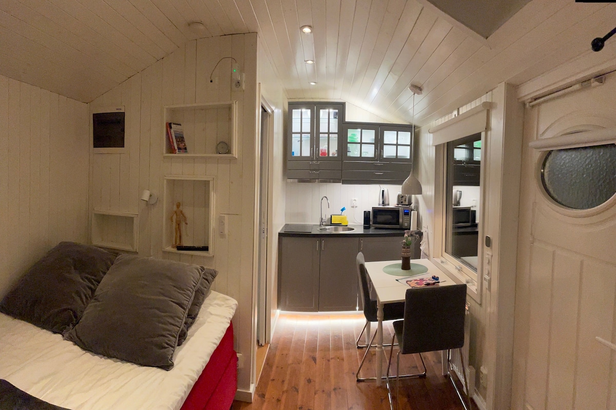 Insta--> #JohannesCabin Rilassati in questo spazio unico e tranquillo. Fai come se fossi a casa tua, ma meglio e più adorabile. Qui si dorme in un letto matrimoniale (larghezza 160 cm) su un soppalco. Spazioso al piano inferiore con soggiorno e cucina in uno (possibilità di dormire in un divano lungo 180 cm). Bagno con doccia e lavatrice e asciugatrice combinate. Splendido patio con vegetazione. Perfetto per cucinare la cena al chiuso o all'aperto sul barbecue. Per maggiori informazioni, seguici su Insta--> #JohannesCabin.