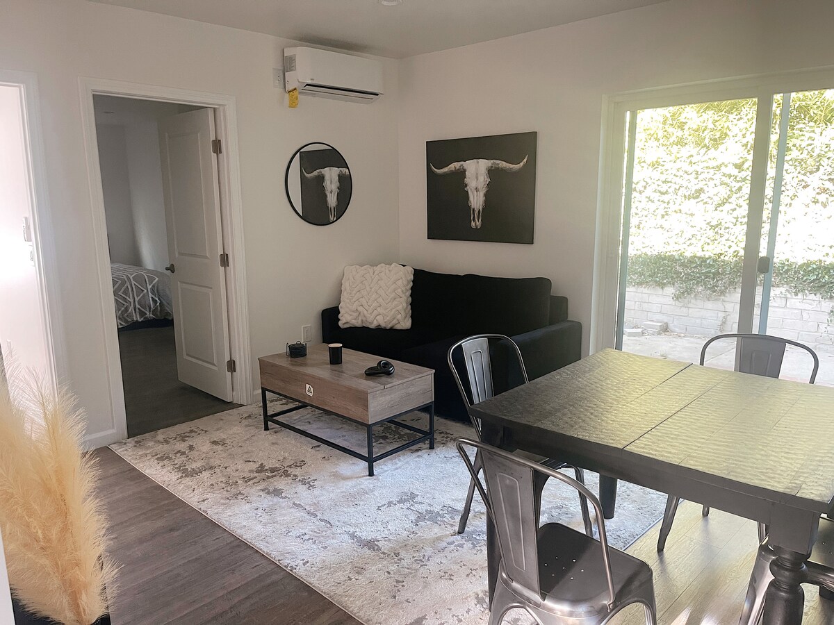 Goditi un soggiorno tranquillo e sicuro in questa pensione privata, sicura e tranquilla con 2 letti e 1 bagno a Valley Village (un piccolo quartiere di Studio City). Questa struttura è stata costruita nel 2022 e include elettrodomestici nuovi, riscaldamento e aria condizionata. Si trova in posizione centrale vicino alle principali autostrade (101, 405, 134, 170) e a pochi isolati dall'iconica Ventura Boulevard, dove troverai negozi e ristoranti. Inoltre, dista pochi minuti di auto da Hollywood Hills, Hollywood, West Hollywood e dagli Universal Studios. Animali domestici ammessi (patio chiuso)! Ricarica veicoli elettrici disponibile a pagamento.