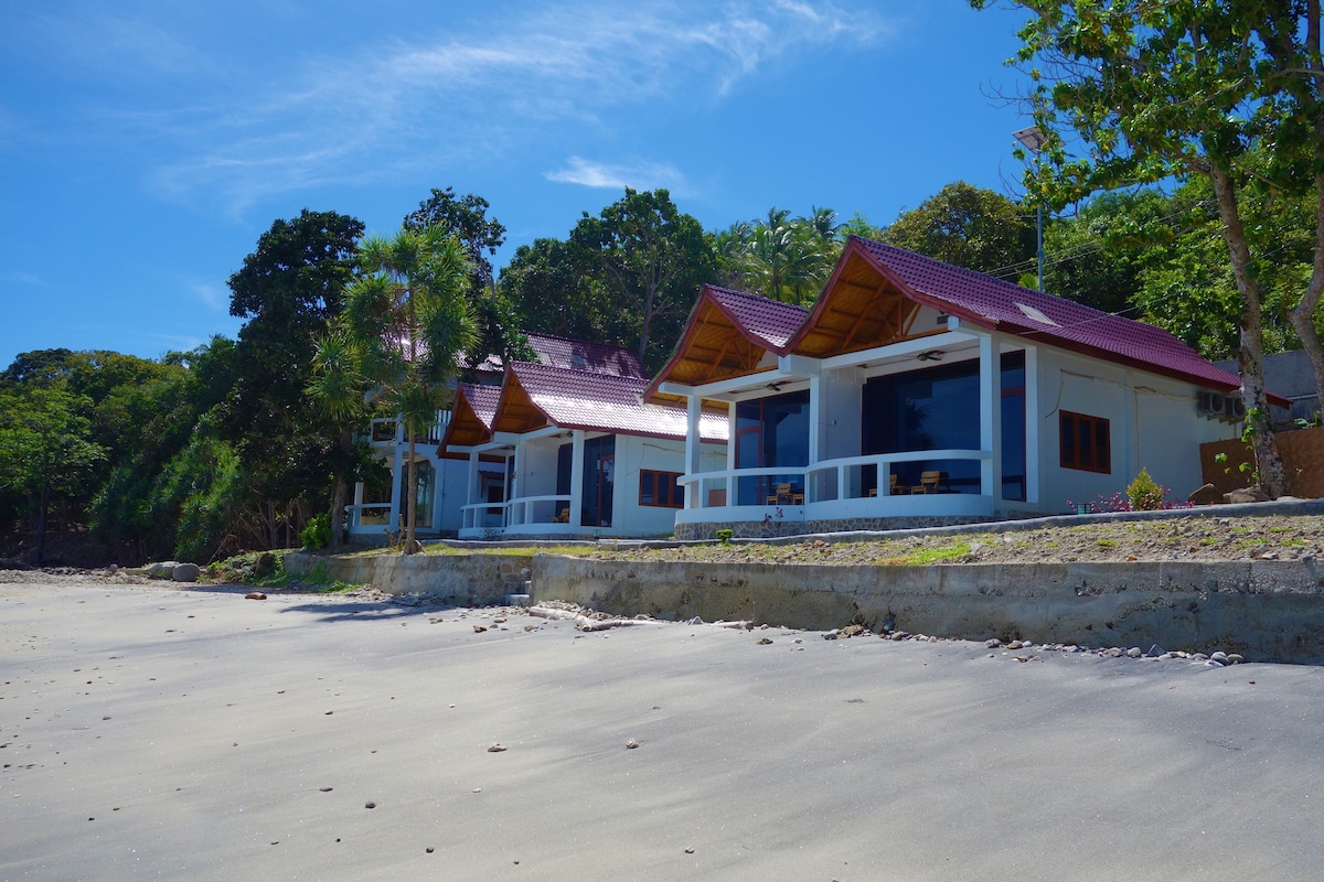 Relax together in this quiet place to stay. With a small family. this is a price for one room/night. In front thet beach here are nine dive points and snorkeling away from the hustle and bustle of the city, hearing animals and birds chirping every morning and evening, close to km zero.