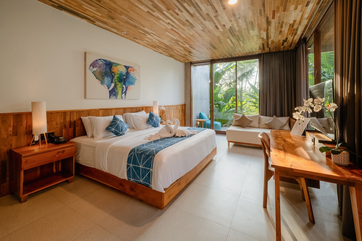 A luxurious classical Balinese escape. Leave the modern world behind to immerse yourself in private luxury and discover the essence of Bali in a natural playground alive with green fronds & sweet coconut aromas. The hum of Mother Nature rejuvenates you as shadows play across statues in the garden. Escape to this bespoke Balinese-style suite and feel the old gods of the island whisper to your soul. Unearth the true Heart of Bali in unique privacy. Warm smiles await you. Book your stay now.