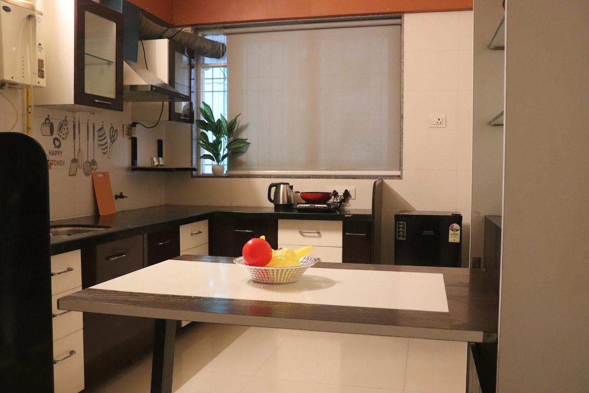 Grazioso appartamento con 2 camere da letto, 2 bagni, sala e cucina, con buona luce diurna. A 1 km dall'autostrada Mumbai-Agra in direzione della strada Pathardi phata. A 29 km/45 minuti dal tempio di Trimbakeshwar, a 10 km dalla stazione di Nashik Road. È disponibile un parcheggio per 4 ruote Solo per coppie sposate o famiglie, con documenti d'identità con foto che corrispondono. Gli animali domestici sono ammessi previa discussione, i visitatori non sono ammessi dopo l'orario di chiusura. Wifi a 50 Mbps, smart TV LED da 50 pollici, frigorifero, aria condizionata in entrambe le camere da letto, lavatrice, filtro dell'acqua PureIt e articoli essenziali per la cucina, fornello a gas.