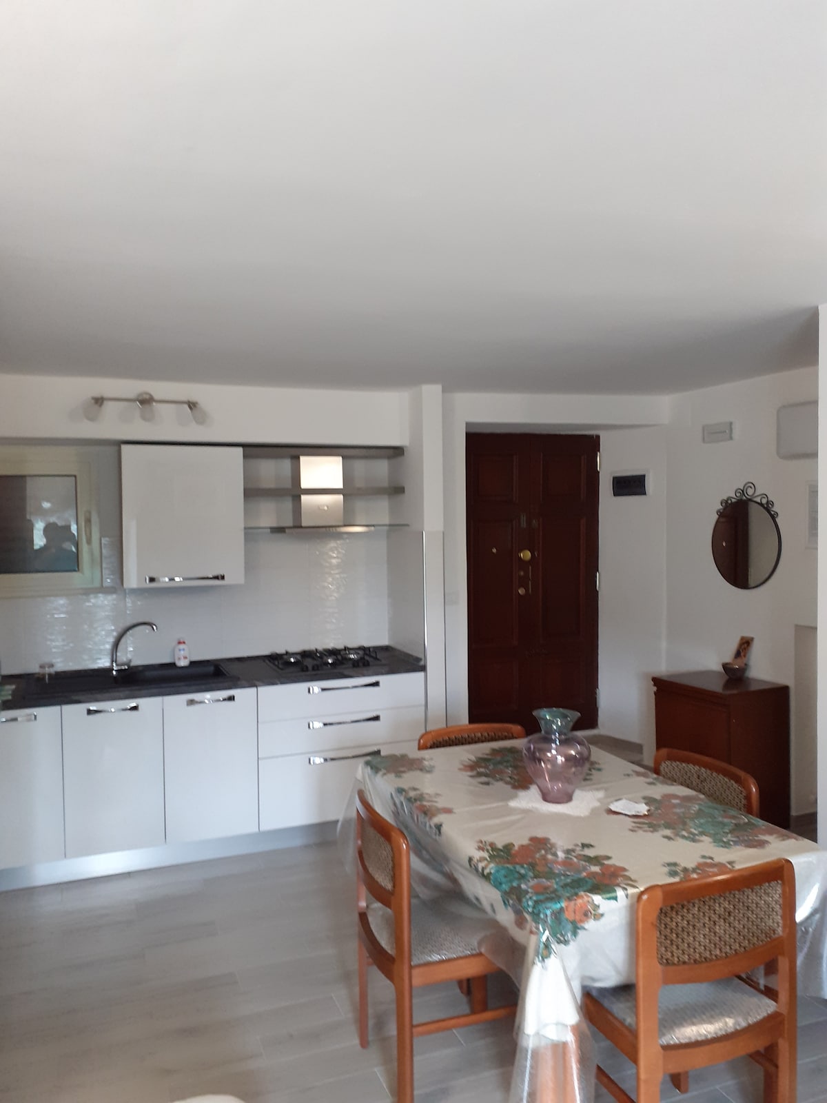 Appartamento con 2 camere da letto (4/5 persone),1 bagno, cucina, 60 mq totale con balcone. (3 letti di cui, 2 singoli, 1 matrimoniale, 1 divano letto) Nota : Piano giorno al piano terra, camere e bagno al 1° piano