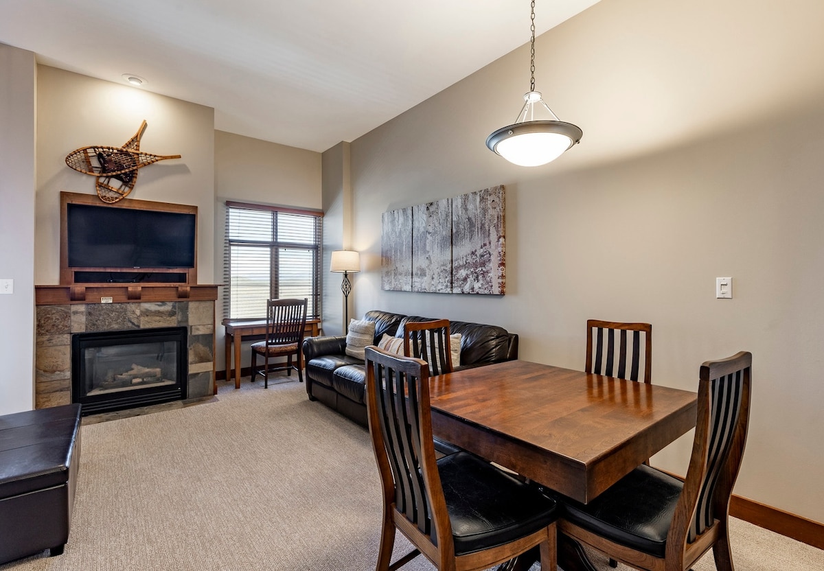 Monolocale al piano superiore con soffitto a volta, a 2,4 km dalla stazione sciistica e da Main Street (a circa 5 minuti di distanza), 33 metri quadrati. L'autobus GRATUITO ti porta a resort/negozi. Smart TV da 60", pavimenti in legno, camino a gas, PICCOLA cucina, letto king-size (2 posti) e divano letto matrimoniale con materasso in memory foam (1 posto). Vasca idromassaggio aperta tutto l'anno. Piscina aperta nei mesi estivi. Ristoranti raggiungibili a piedi. Per accedere, dovrai salire una rampa di scale. Voglio che il mio monolocale sia come la tua casa lontano da casa!