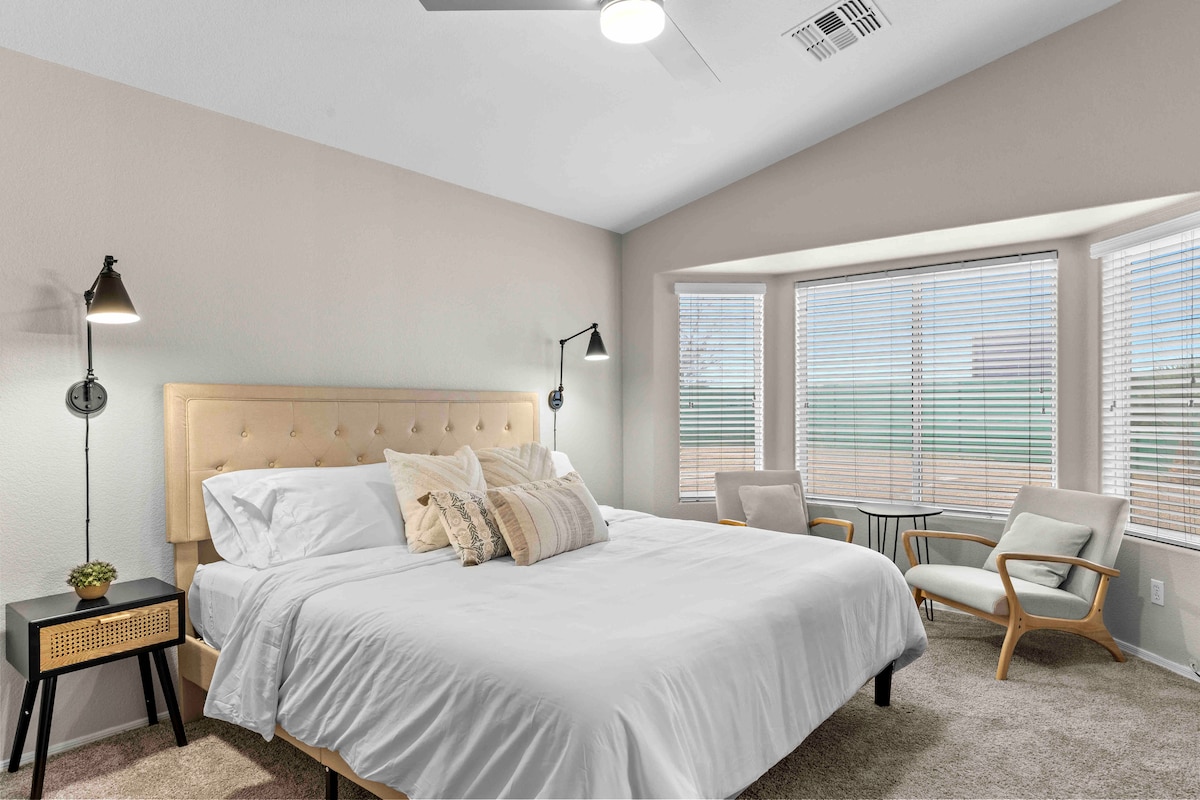 Entra nel castello recentemente ristrutturato su Rose Garden, una casa con 3 letti, 2 bagni e un loft a nord di Phoenix. Scopri i comfort moderni all'interno, con soffitti a volta, una cucina elegante e un'area lavoro nel loft, la miscela perfetta di stile e funzionalità. Il pittoresco e unico cortile, completo di braciere, tavolo da pranzo e varie opzioni di seduta, crea un'oasi rilassante per assaporare il delizioso clima dell'Arizona. Ti diamo il benvenuto nella tua serena casa lontano da casa, allo Chateau on Rose Garden.