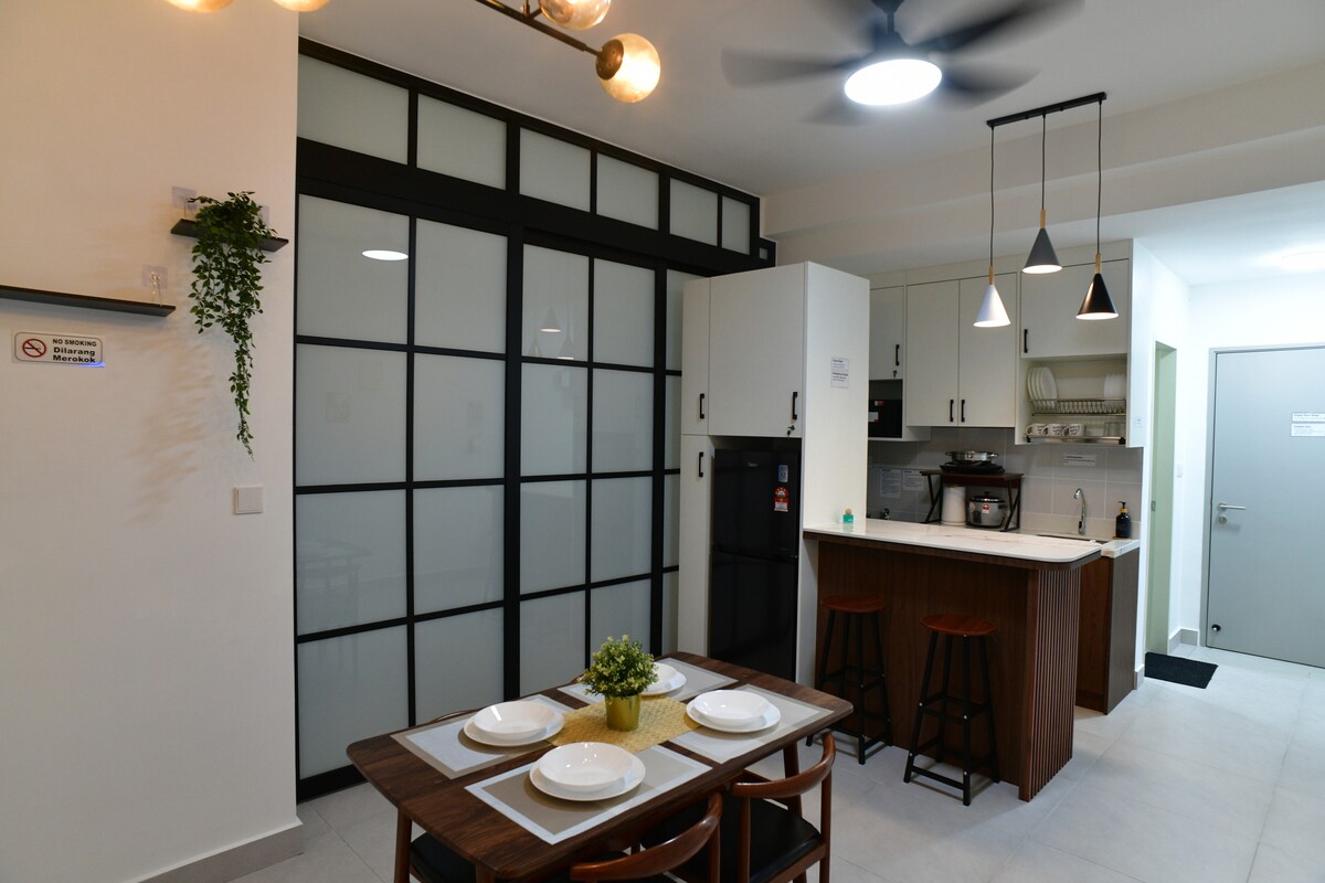 La residenza di📍 Pertama ti dà il benvenuto a Grey City! Questo monolocale è stato creato di recente con tanto amore, combina arredi contemporanei con servizi moderni e un'esperienza che tutto può godersi, in particolare il momento della vasca idromassaggio con il tuo amore e lo schermo del proiettore da 100"con Netflix. Questo posto unico ha uno stile tutto suo, offre un ambiente di soggiorno accogliente, pulito, tranquillo e rinfrescante per le coppie. Vieni a vivere la Grey City! A presto.