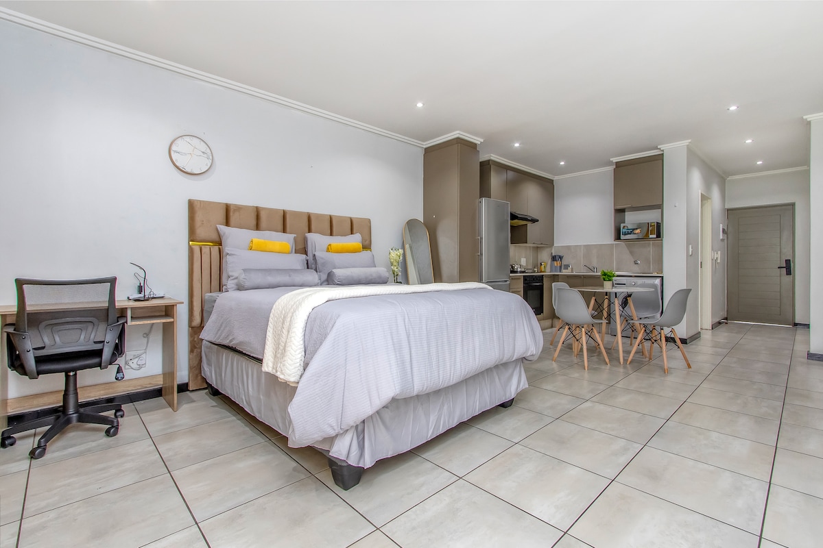 Ti diamo il benvenuto a "Explore at Ellipse", un alloggio Airbnb nel quartiere Waterfall. Il nostro appartamento a tema celeste può ospitare fino a quattro persone. Goditi il tramonto dell'Altopiano dal balcone e scopri i servizi come la piscina, la palestra, il Luna Club e il ristorante Olives and Plates. Scopri il Waterfall City Park e il Mall of Africa nelle vicinanze. Parti per una vacanza straordinaria e lascia che l'esplorazione accenda il tuo spirito. Ti diamo il benvenuto in un'avventura senza limiti!