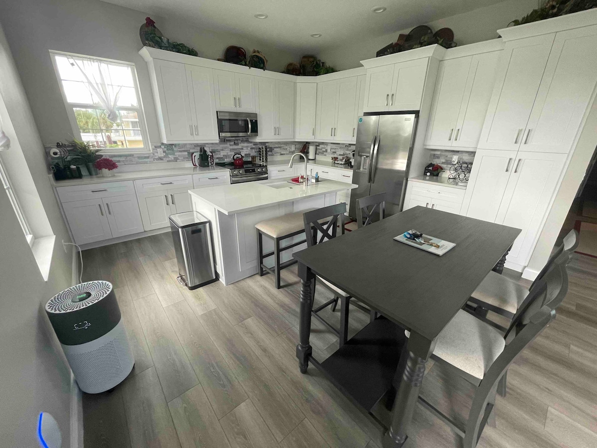 Il rifugio può ospitare comodamente 4 persone. La nostra casa con 2 camere da letto e 2 bagni dispone di una piscina con cascata e di un cortile recintato. Questo paradiso pittoresco ti farà sentire rilassato, seduto a bordo piscina a goderti un buon libro con un drink, mentre ascolti la brezza tra le palme nel cortile sul retro. Si trova in una strada tranquilla. Ma a pochi minuti da diverse spiagge, campi da golf, negozi e ristoranti, attrazioni e parchi. C'è qualcosa da fare per tutta la famiglia.