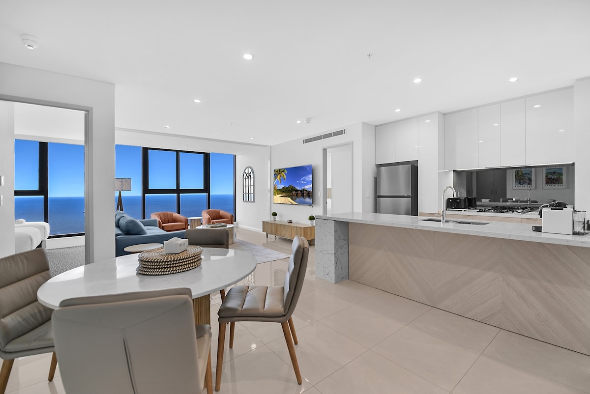 Questo splendido appartamento al 14 ° piano con 2 camere da letto, completamente climatizzato, ha un arredamento moderno e fresco. Entrando nella zona giorno open space, potrai scegliere tra 2 ampi balconi con una splendida vista a 180° sulla spiaggia, sull'oceano e sull'entroterra. Adiacente all'iconico edificio Q1 e a pochi passi da negozi e ristoranti. Lascia l'auto nel parcheggio custodito gratuito e salta sulla metropolitana leggera, che si trova a 2 minuti a piedi. L'accesso alla spiaggia dall'altra parte della strada renderà il tuo soggiorno speciale.