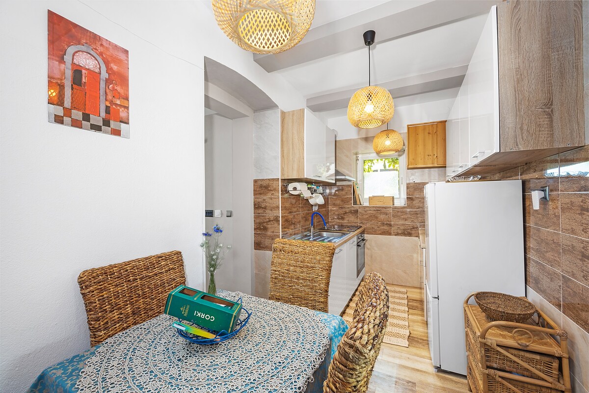 Appartamento artistico, elegante e confortevole con due camere da letto, ristrutturato a nuovo, nel centro della città, proprio all'angolo dell'ingresso del centro storico. Parcheggio privato disponibile. Il soggiorno offre una splendida vista sui parchi, sul verde e sull'anfiteatro romano dove ti sembra di poterlo toccare. Dalla cucina immersa nei fiori puoi goderti il caffè del mattino con una vista unica prima di andare a esplorare la città o goderti la pace pomeridiana.