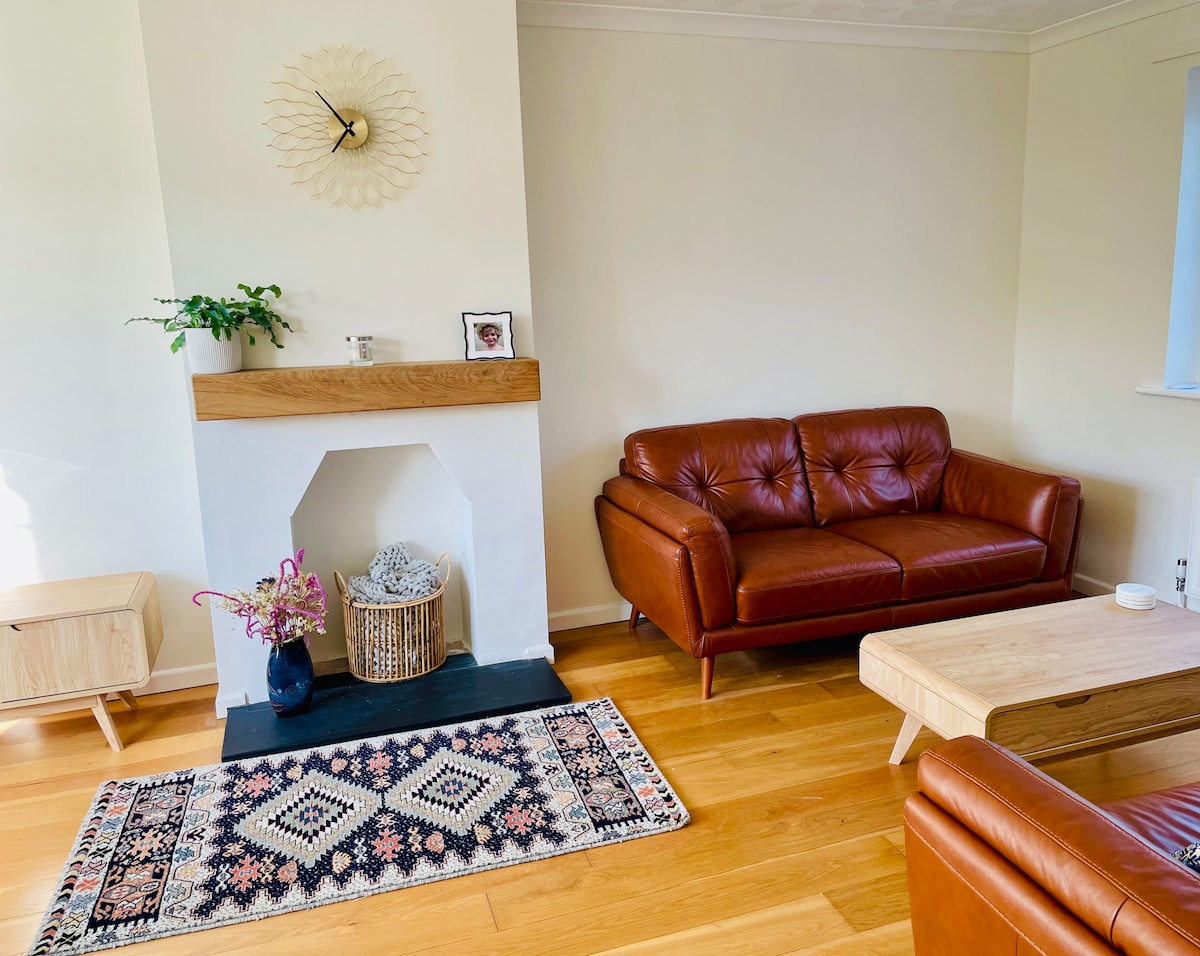 Una casa accogliente e luminosa in Cornovaglia, a due minuti a piedi dalla spiaggia e con una vista fantastica! Un grande divano comodo e una TV da 75" con audio surround sono il luogo perfetto per rilassarsi! Con Internet StarLink super veloce e un posto dove asciugare le mute, sei pronto per rilassarti, lavorare o giocare! Goditi una nuotata, fai surf o un'escursione lungo il sentiero costiero e nella campagna... e trova cibo e bevande gustosi nei pub e ristoranti locali.